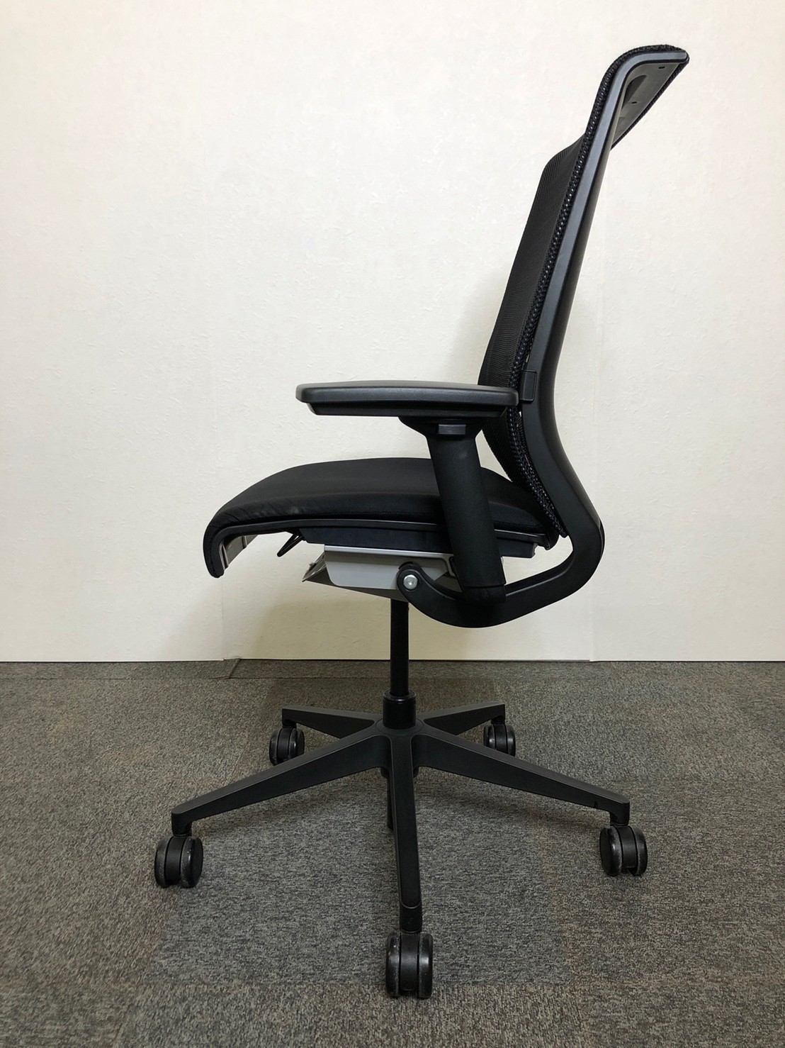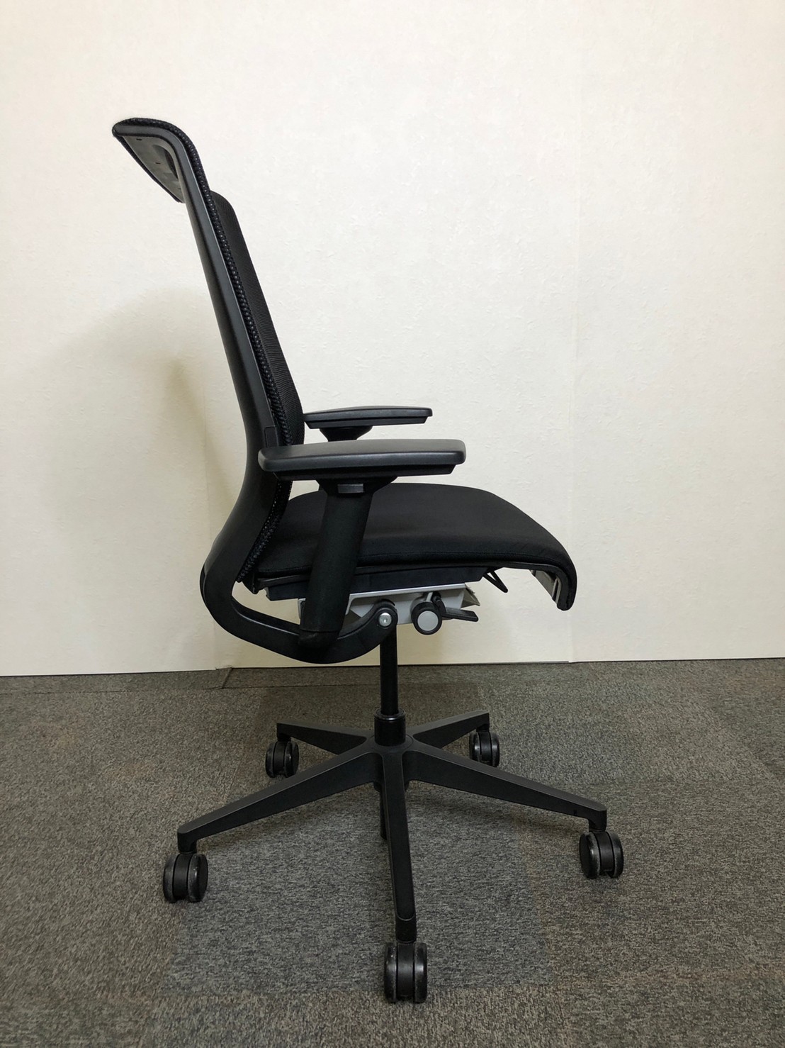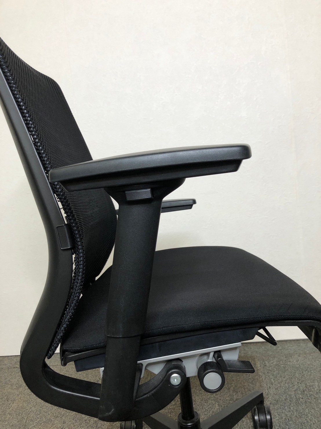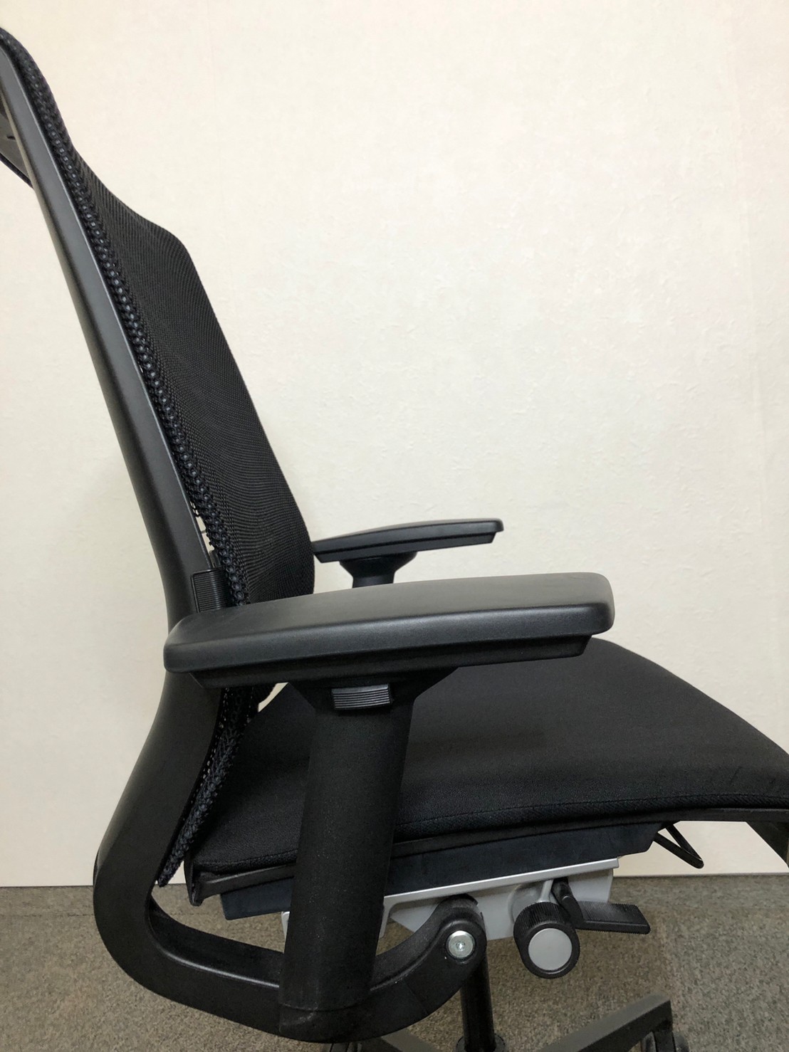 快適な座り心地に不可欠な調節機能である、上下昇降、座面の奥行き調整、リクライニングなどを備えており、操作もわかりやすく好評です。 特に、座面の奥行きは、座面下の左右に通った細いバーで調整でき、座ったままで軽やかに滑るように調整が可能です。 価格面では、新品では高めですが、中古は流通も多く、定価の3割前後の価格で高級チェアの座り心地を手に入れることができます!