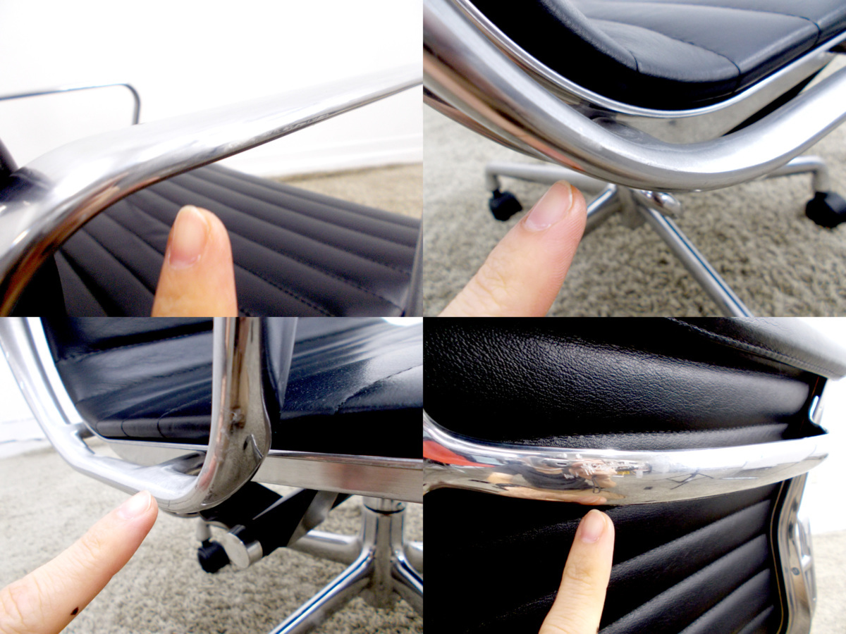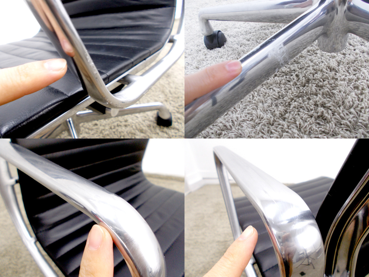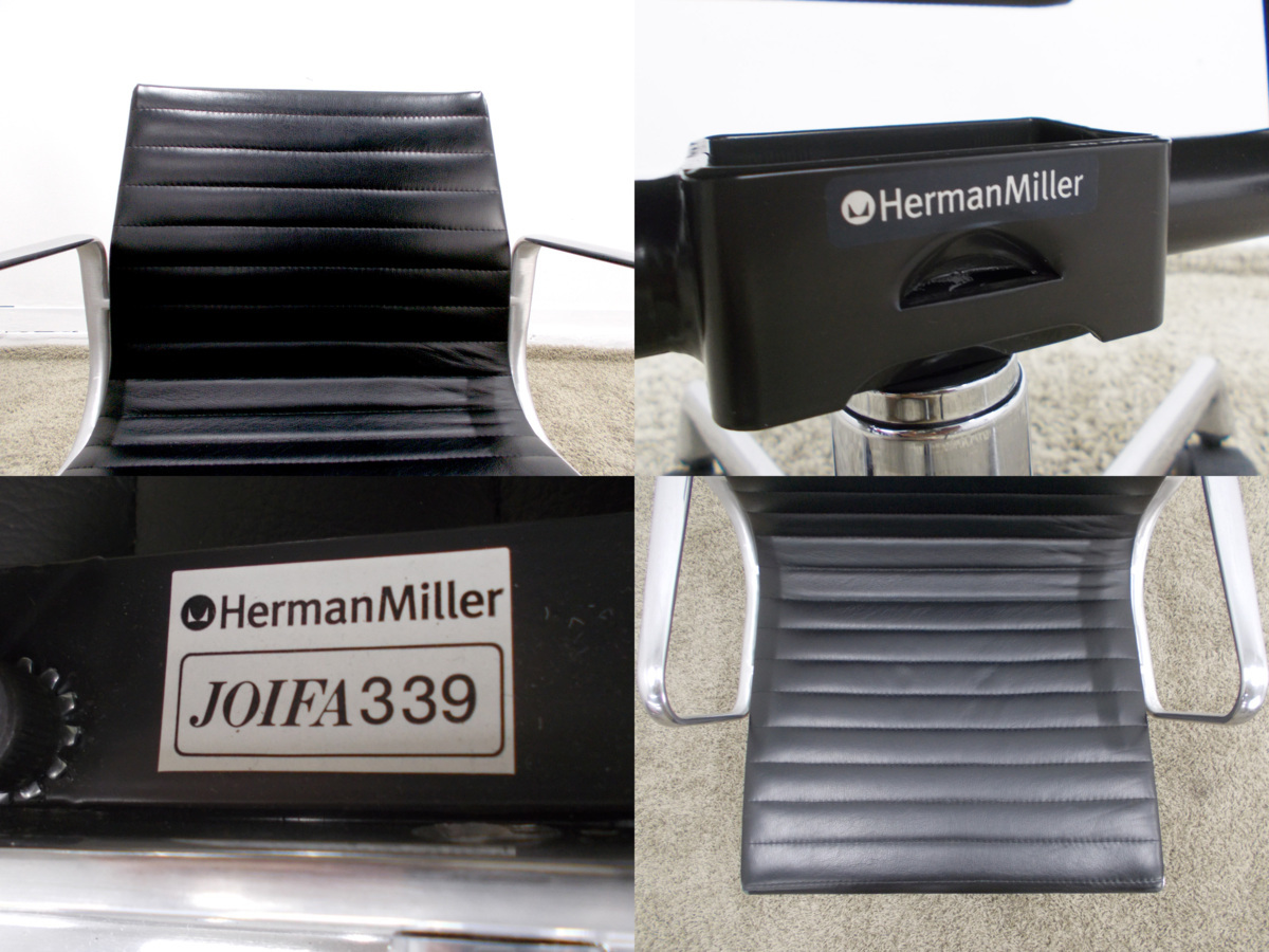 D)HermanMiller/ハーマンミラー イームズ アルミナムチェア ローバック ブラック 本革在庫がある店舗一覧