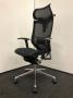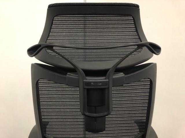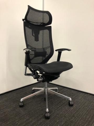 【2018年製】オカムラ バロンチェア エクストラハイバックモデル 座:メッシュ 背:メッシュ シルバーフレーム アジャストアーム 可動ヘッドレスト搭載 ※座面ヨレあり