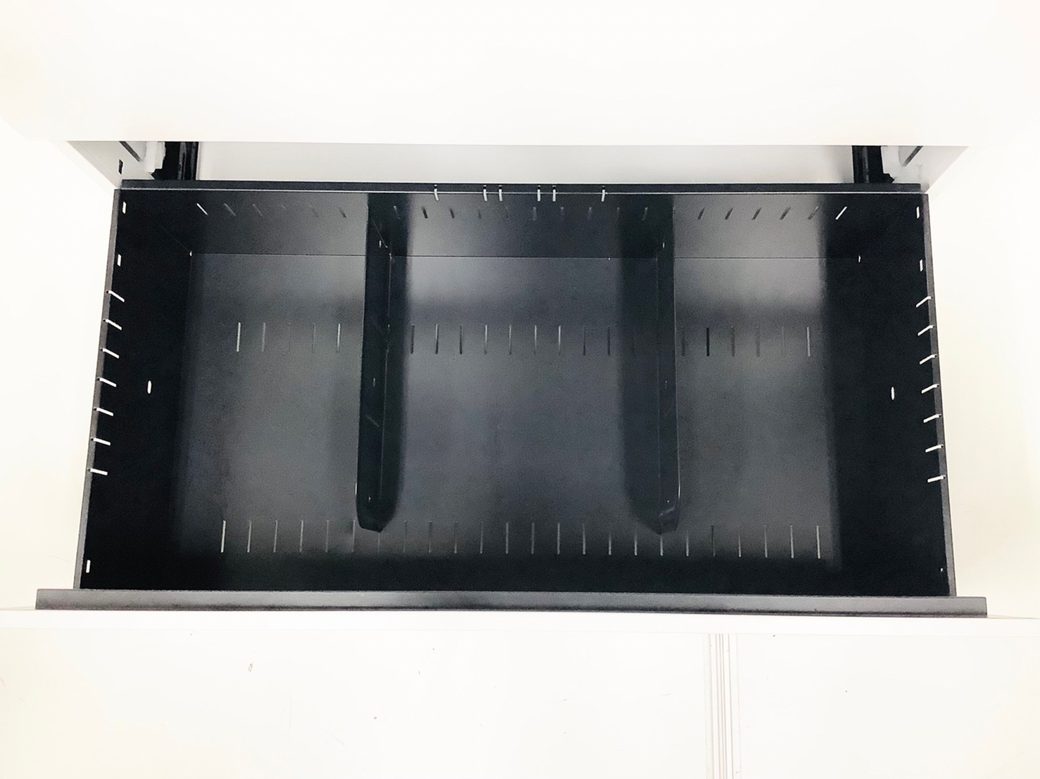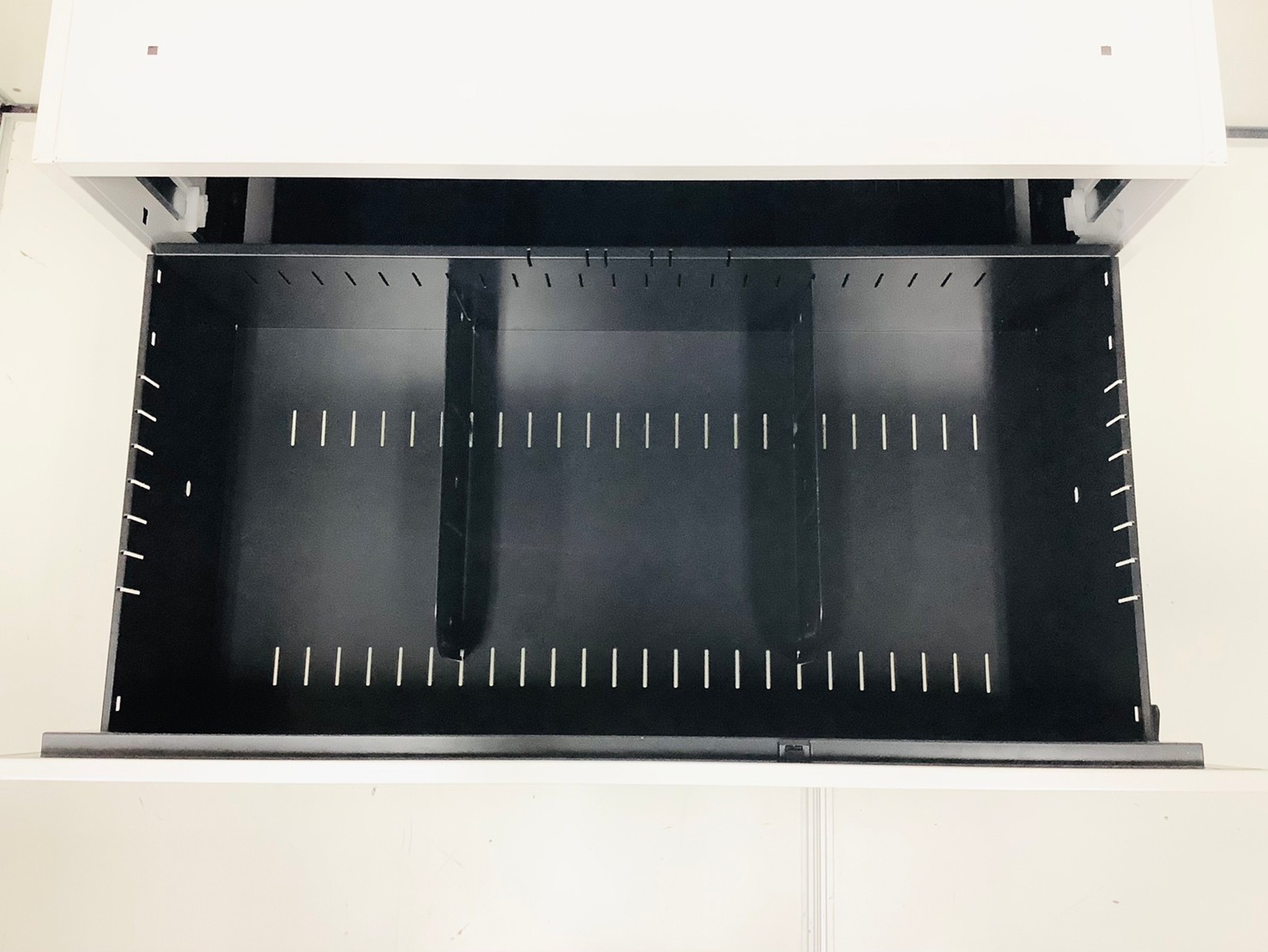 - 両開きタイプは扉が180度開き、通路の邪魔になりません。ラテラルタイプは引出しが限界まで出せ、出し入れ楽々。