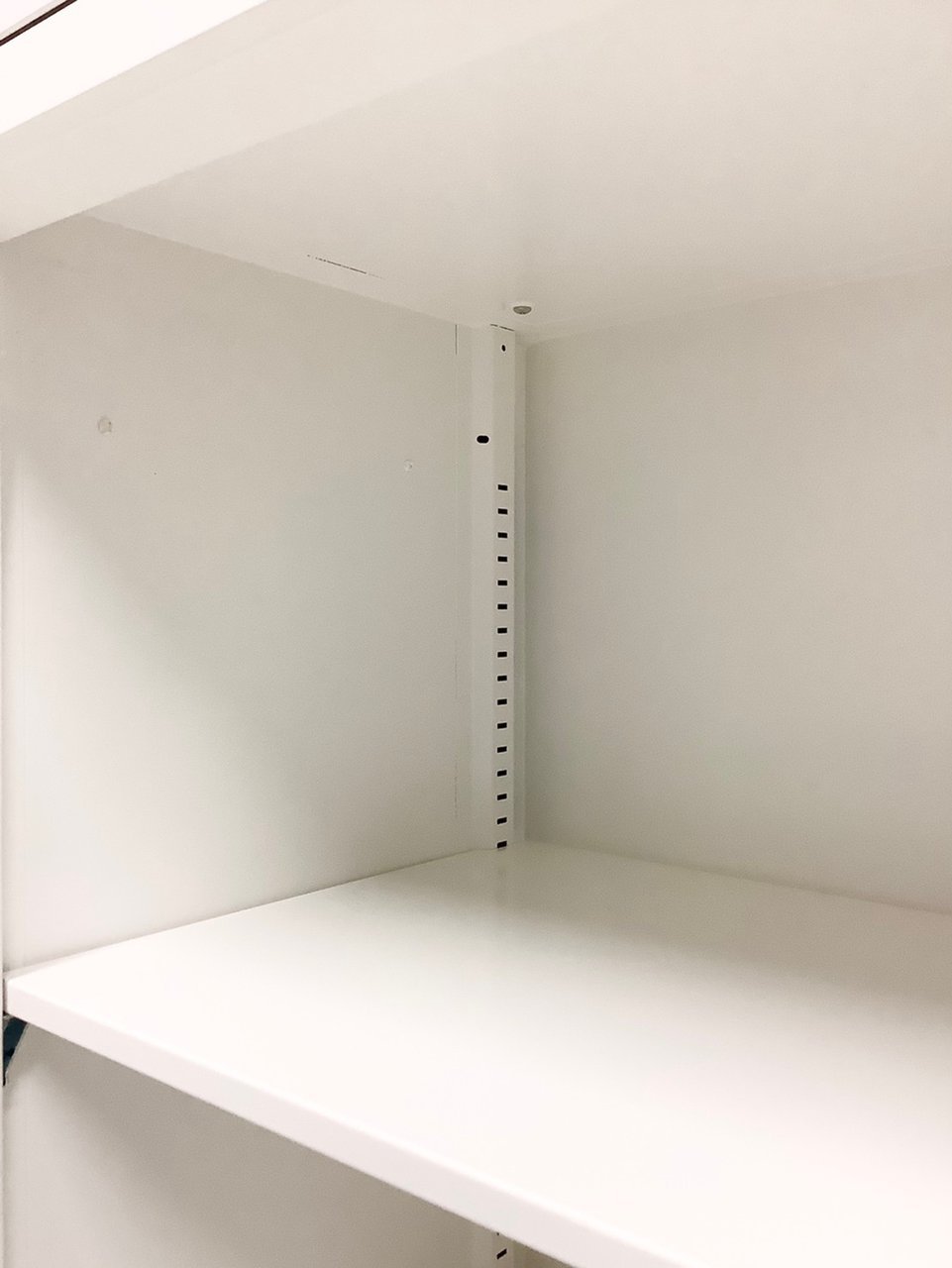 オープンキャビネットが入荷!とりあえず収納したい、書類の出し入れの多い、常に見える形で収納したい、そんなお客様におすすめ! ■オカムラ/レクトライン/ホワイト ※元は両開き書庫のため扉を外した跡がございます。