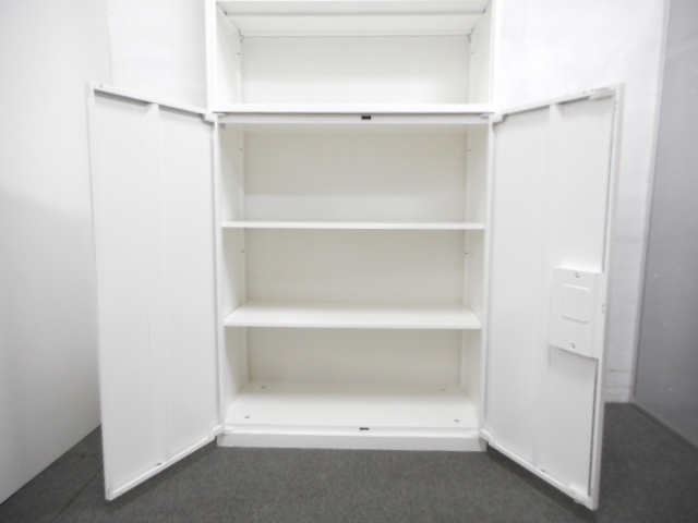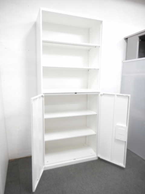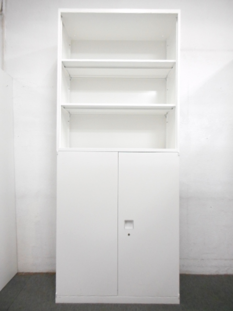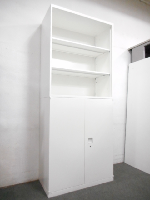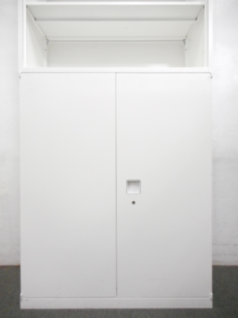 使い勝手抜群の上下書庫セット!上段両開き+下段オープン仕様! ■オカムラ/レクトライン/ホワイト