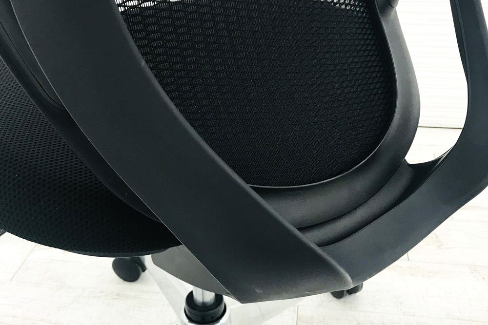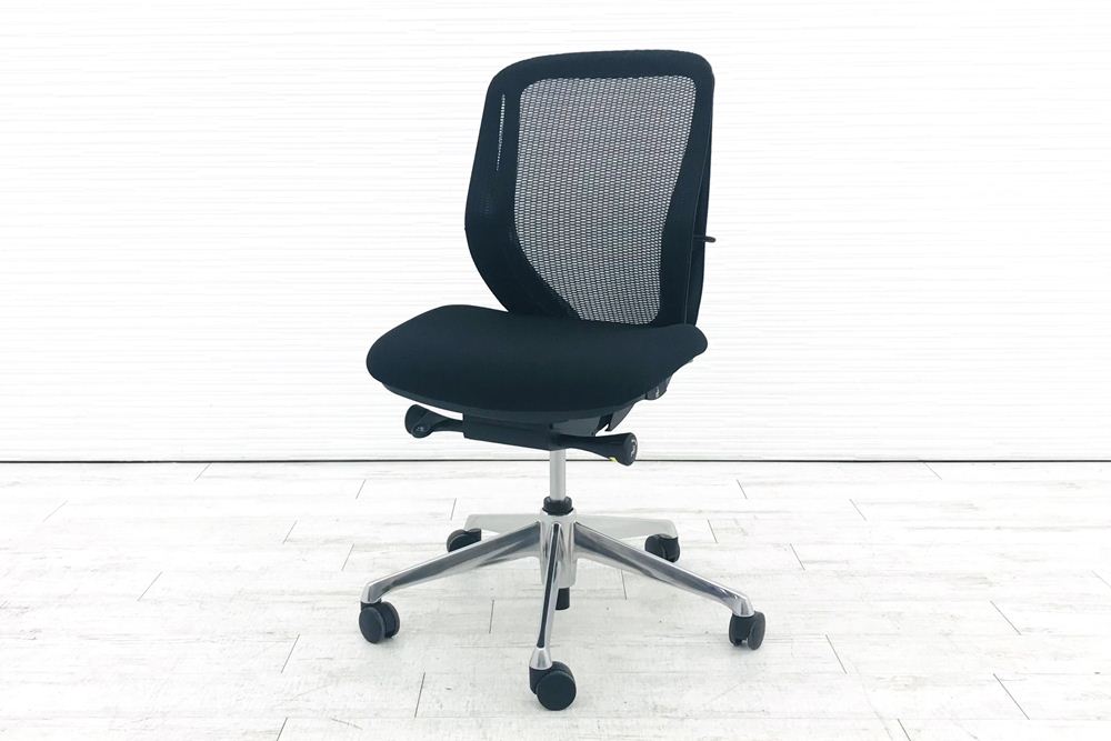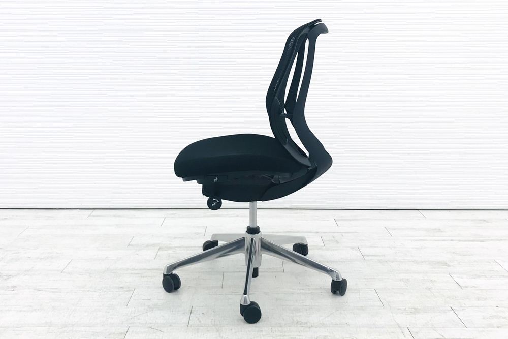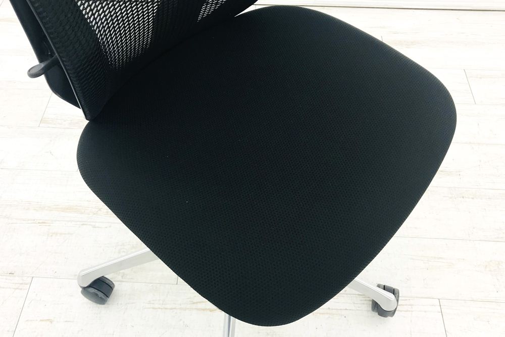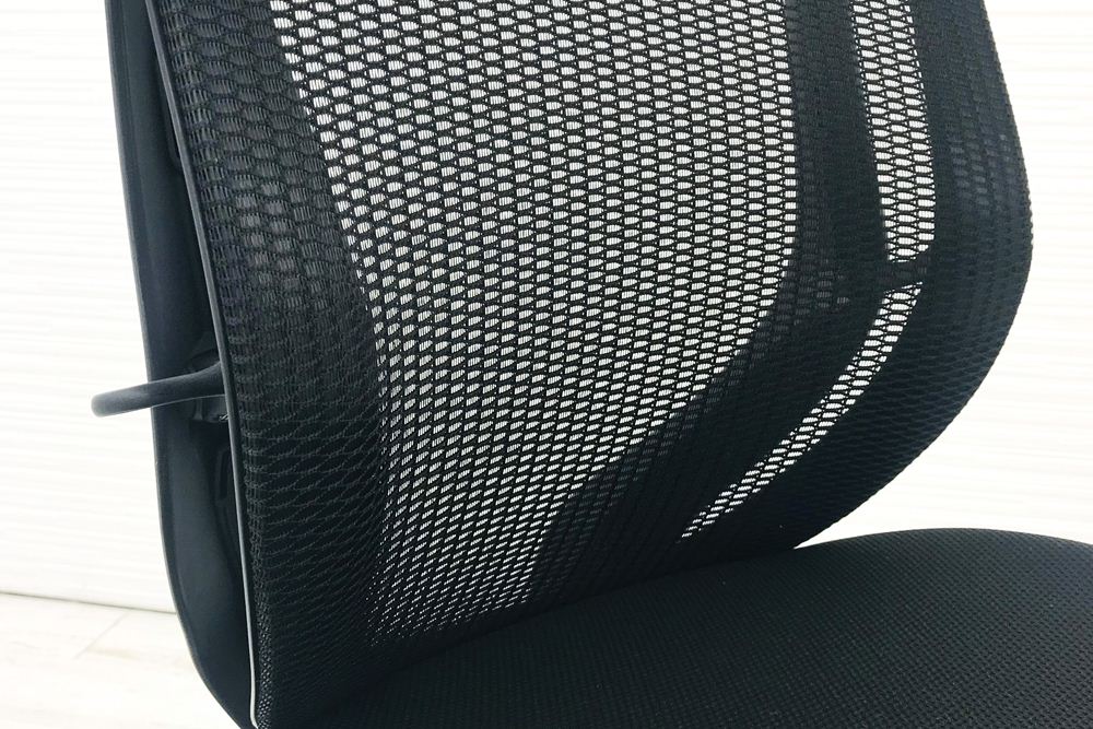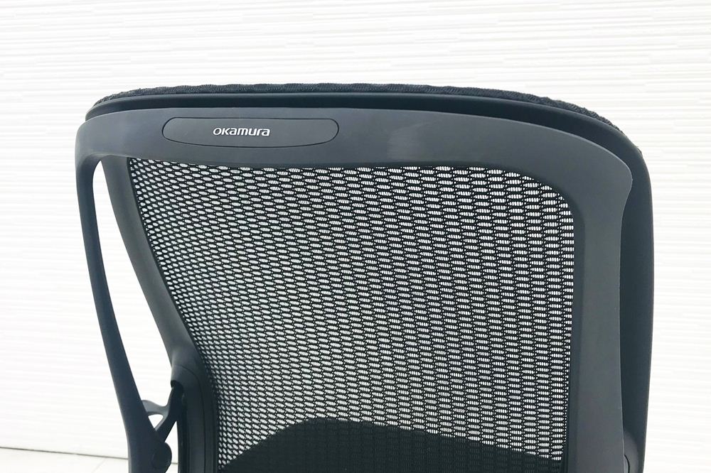 【T11】【商品入替のため、残り2脚限り】オカムラ製 シルフィー ブラック 肘無し ローバック 背面メッシュ 三次元曲面が身体にフィット! 前傾チルト機能付き大人気メッシュチェア! 肘無しローバックチェア!!