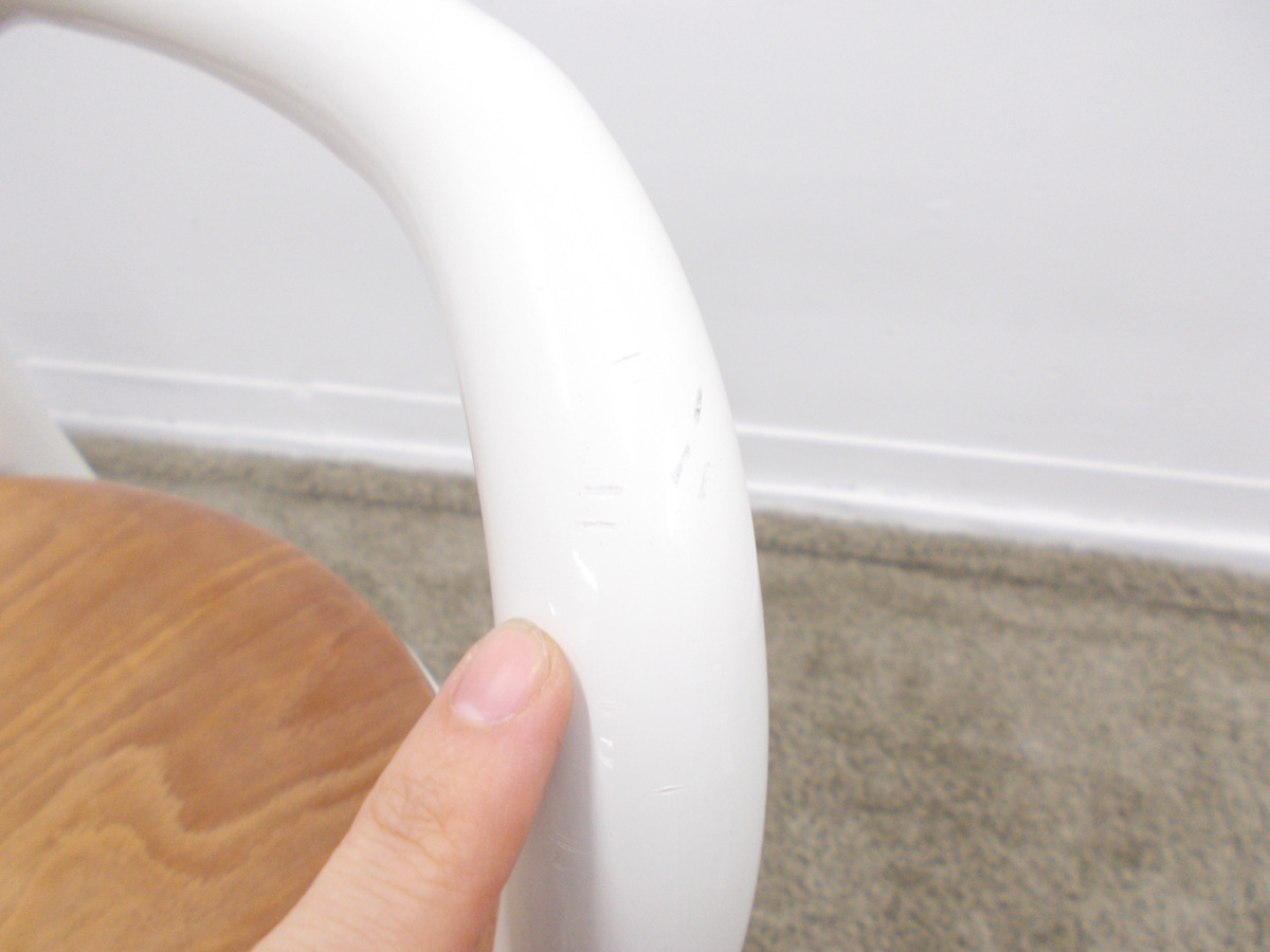 - かなり強い濃い黄ばみ・変色が商品全体にある。(例、座面・背もたれ、脚部等にある。)