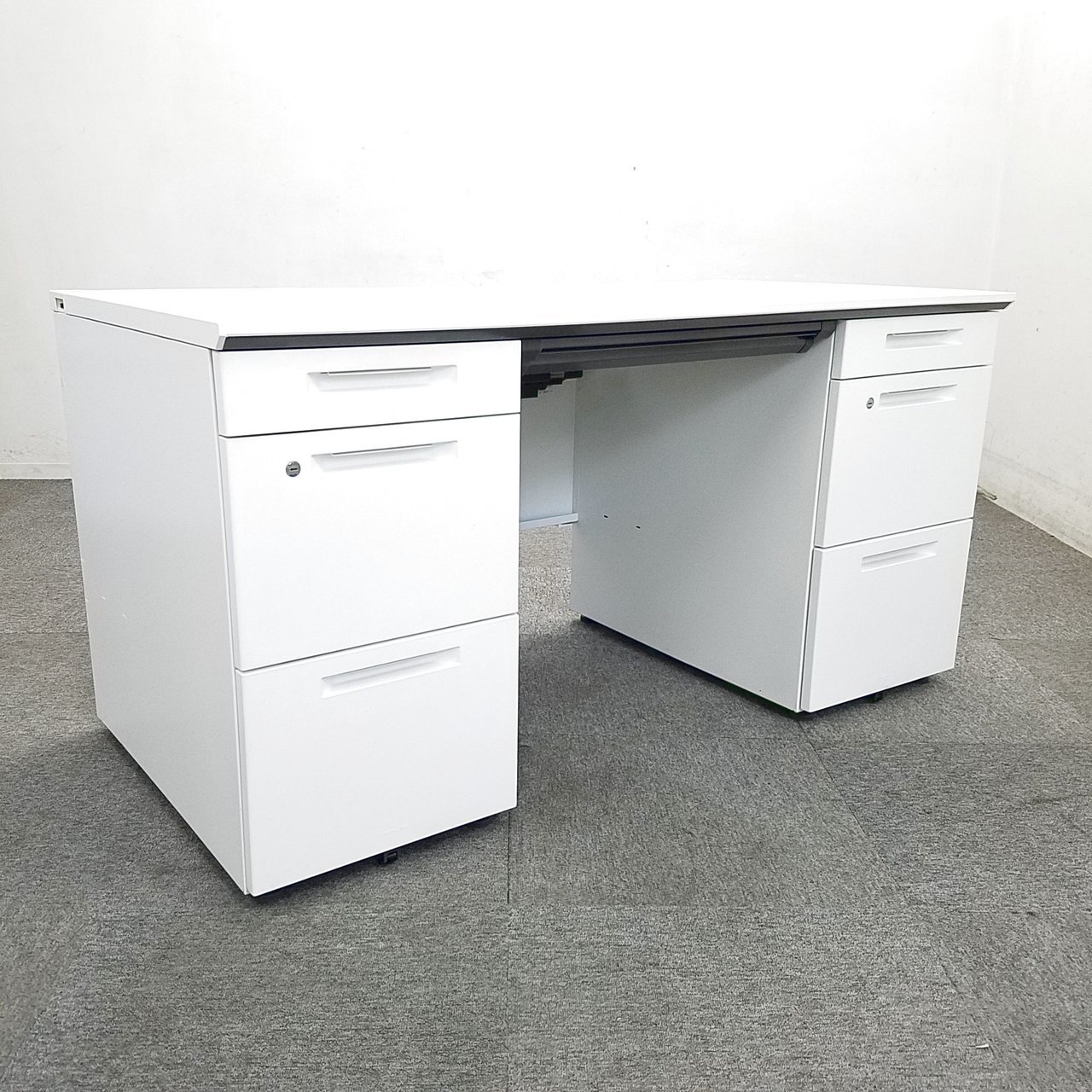 【在庫入替セール】コクヨ iSシリーズ 両袖机 W1400の定番サイズ ホワイト 鍵付き シリンダー錠 両側の引き出しで大容量の収納が可能 【愛知・名古屋・豊田・静岡・浜松】