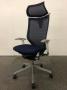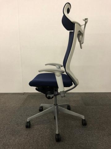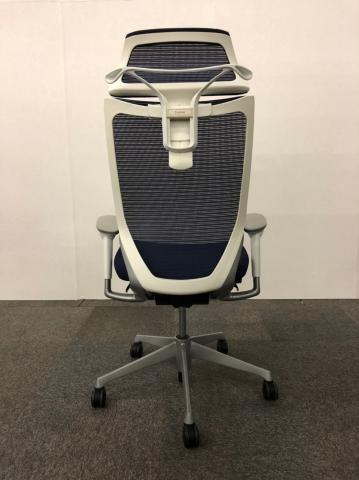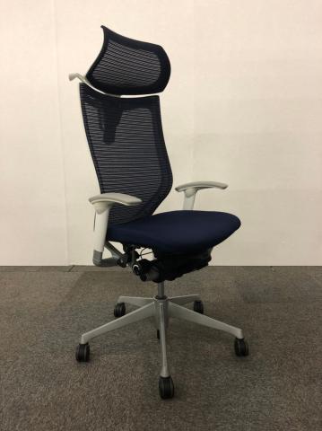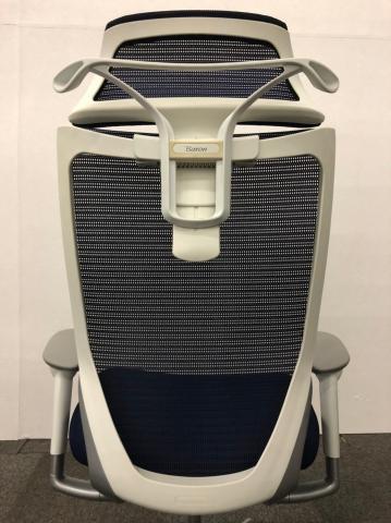 【新品ヘッドレスト付き】オカムラ/バロン/ブルー×ホワイト/可動肘/座面クッション【AD】