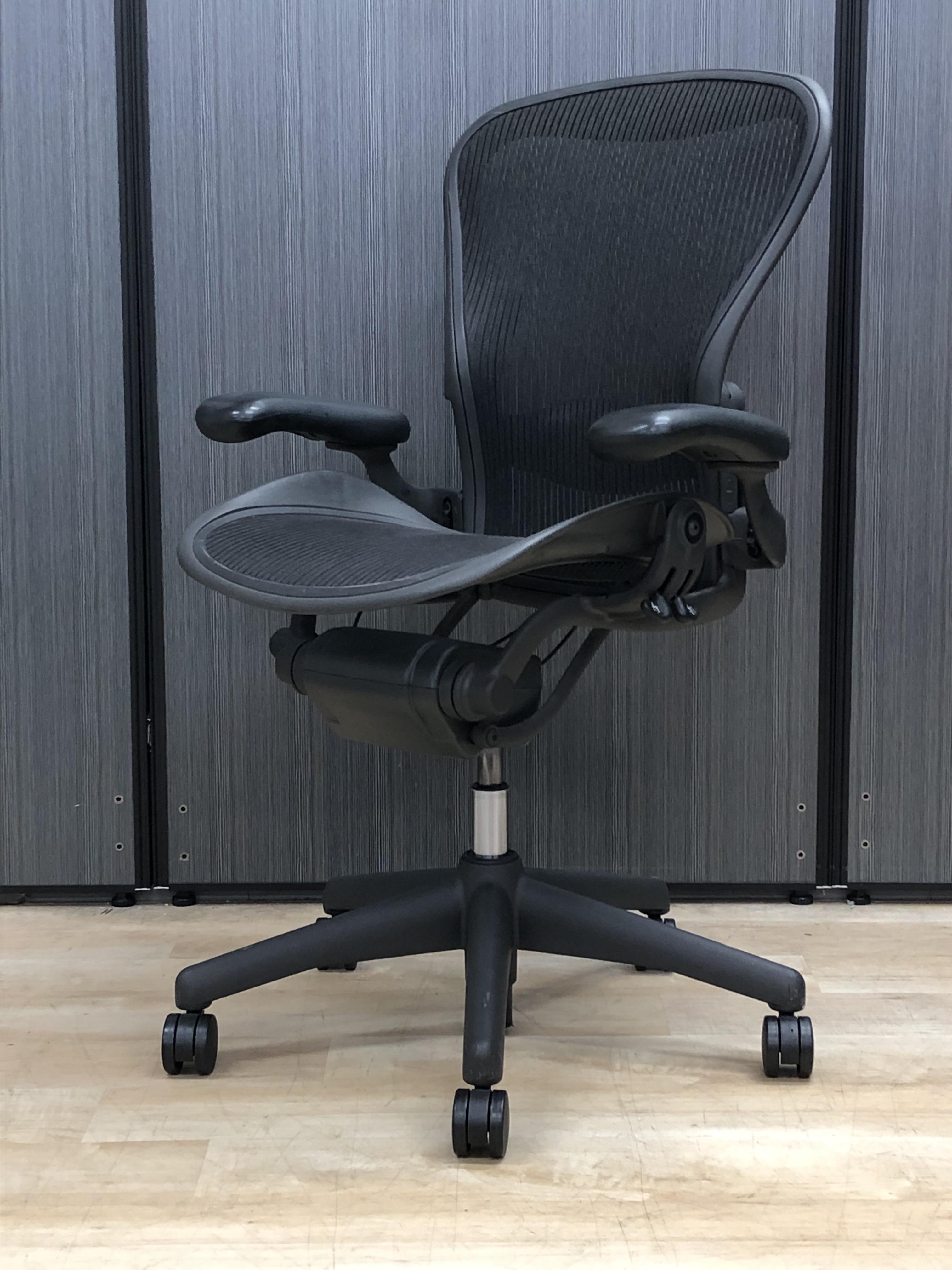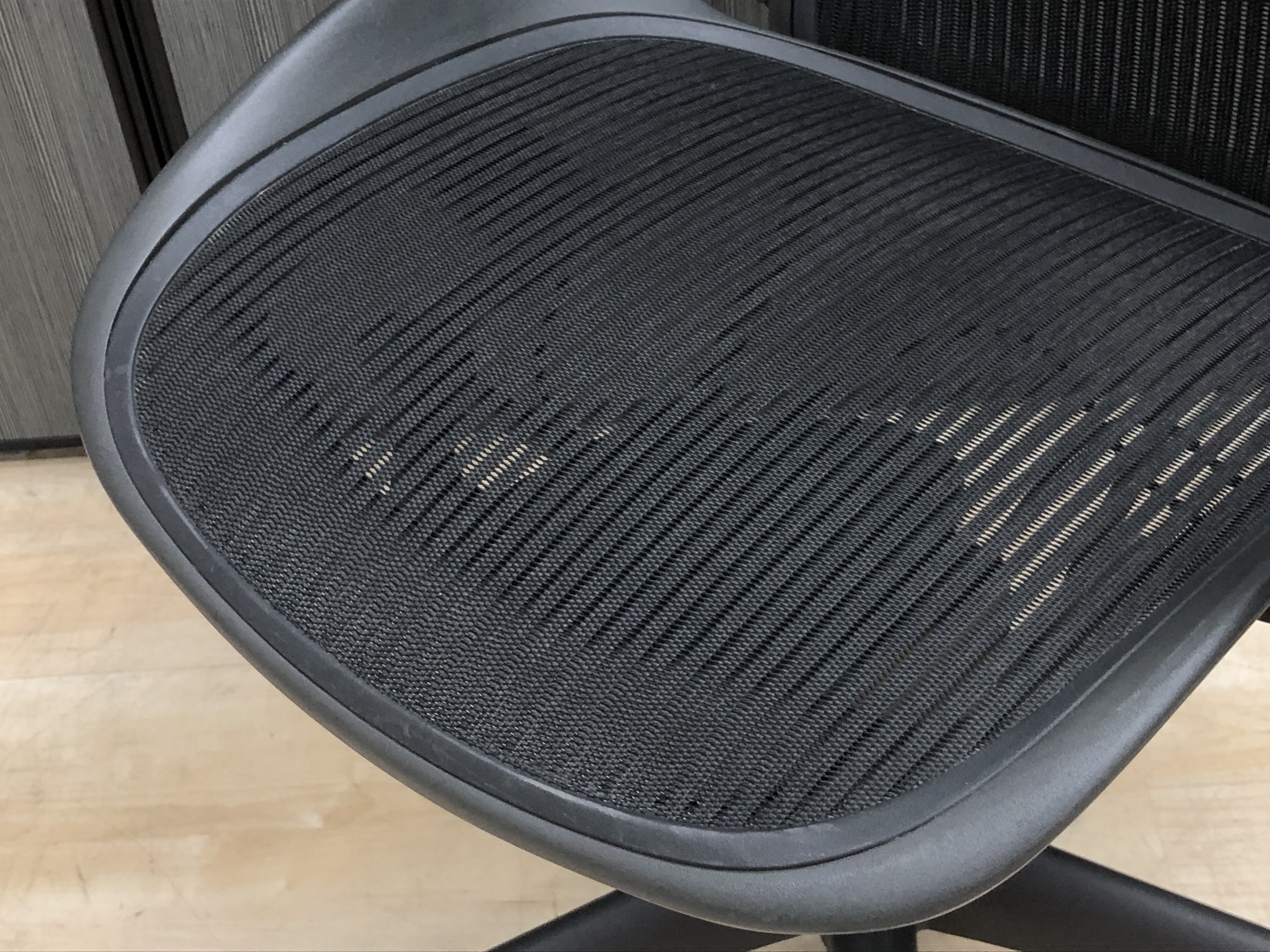 【★状態イマイチのためお安く!】■ハーマンミラー製 アーロンチェア Bサイズ 固定肘 ※キズあり・ランバーサポート無・昇降ガス圧弱めのためお安く!【訳あり特価品】