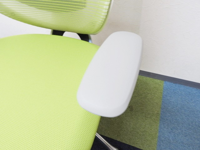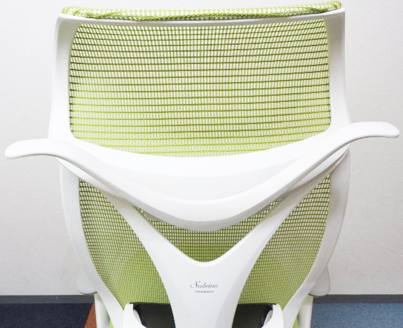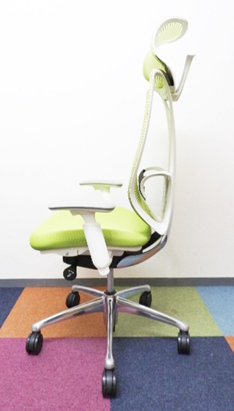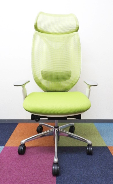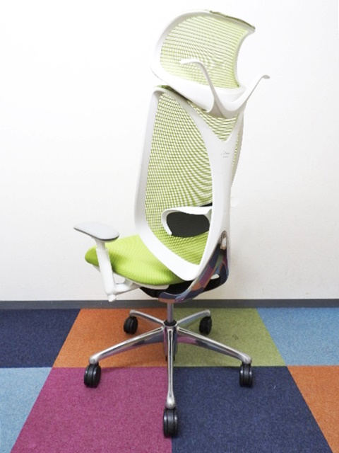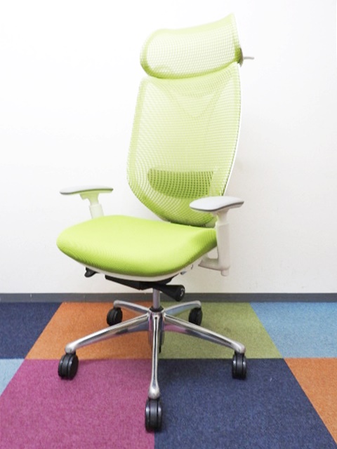 【最先端のワーキングチェア!】■オカムラ製 サブリナチェア ヘッドレスト付 可動肘 ハンガー付 ライトグリーン【倉庫在庫】【RP】- 品川・三田店