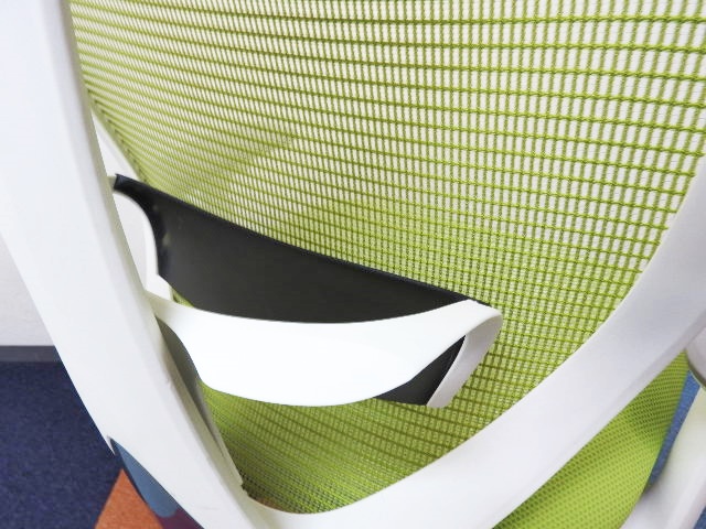 【美しい曲線&透明感のあるメッシュ】■オカムラ製 サブリナチェア ダークグリーン アジャストアーム付 ホワイトボディ ハンガー付【※外部倉庫在庫品(店頭在庫無)】【BR】