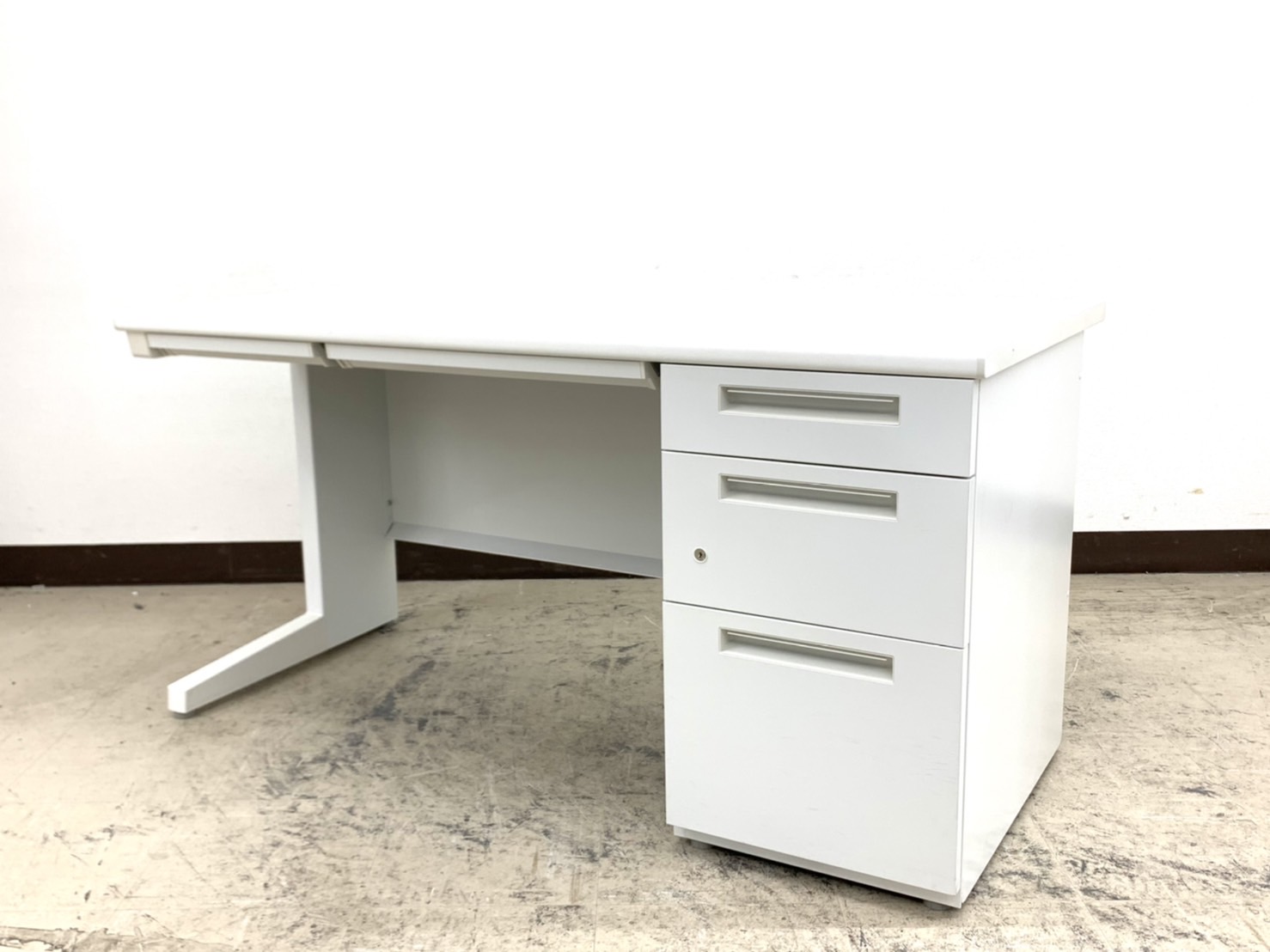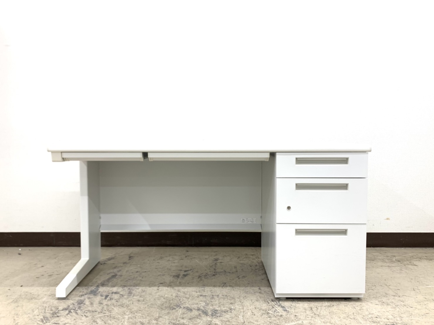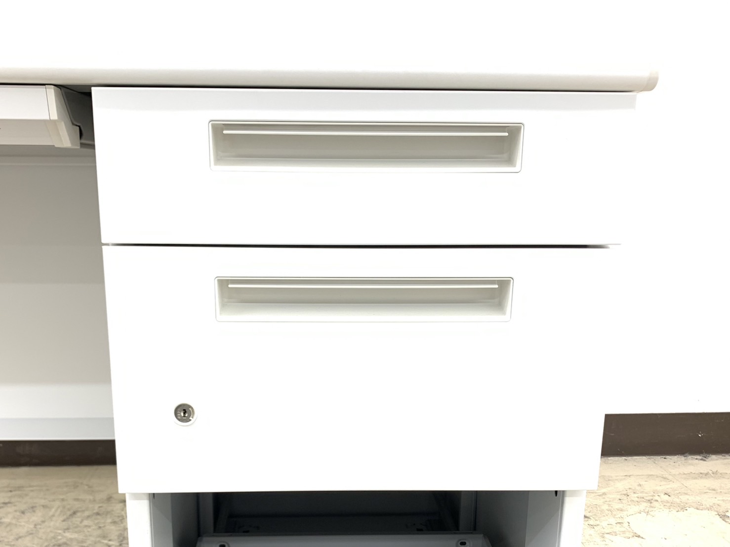 【在庫入替セール】片袖机 イナバ デュエナ W1400のおおきめサイズ 清潔感のあるホワイトカラー 鍵付き ※天板ふちにキズの補修跡あり