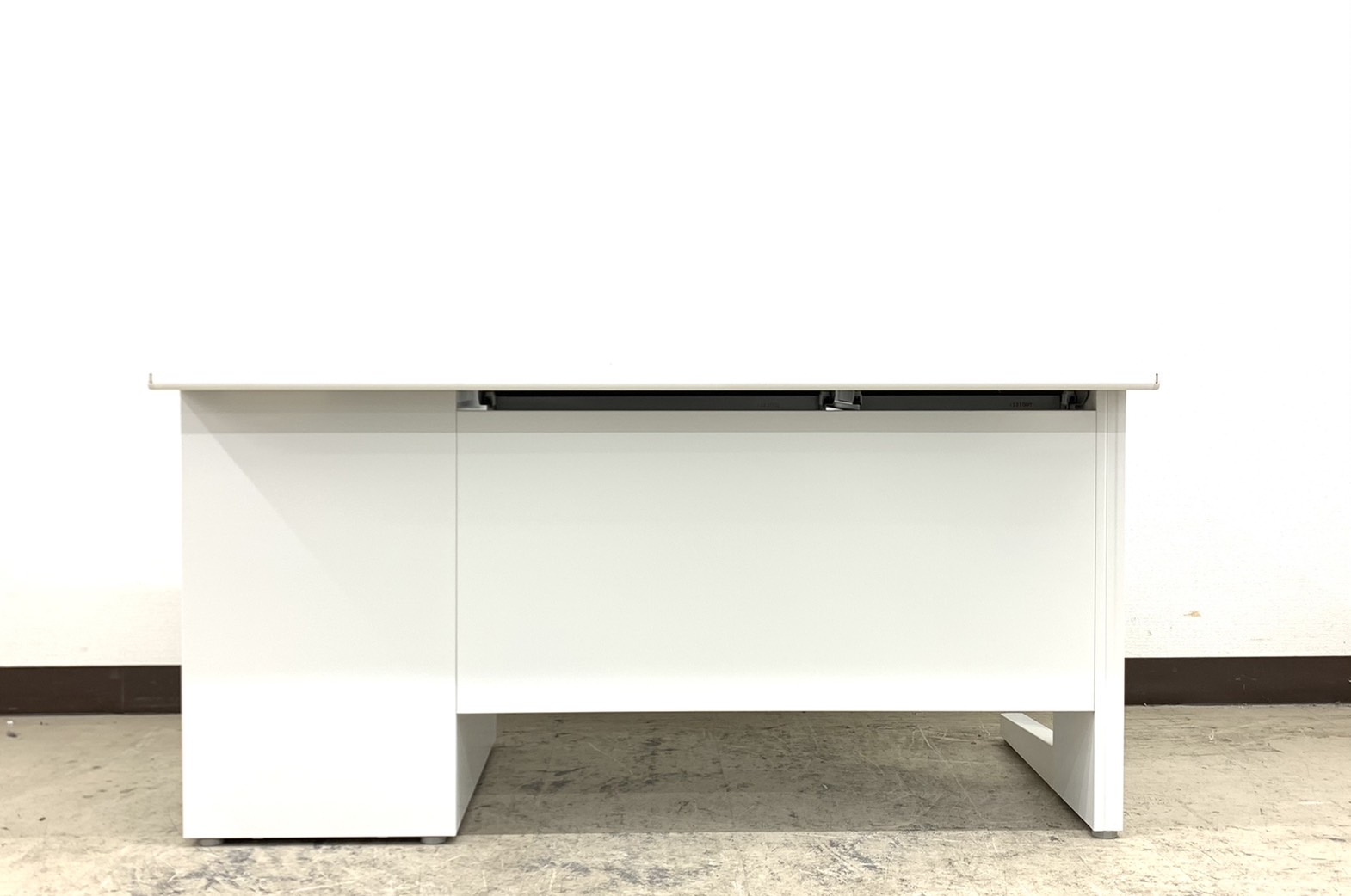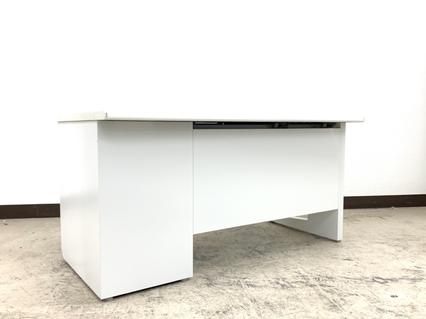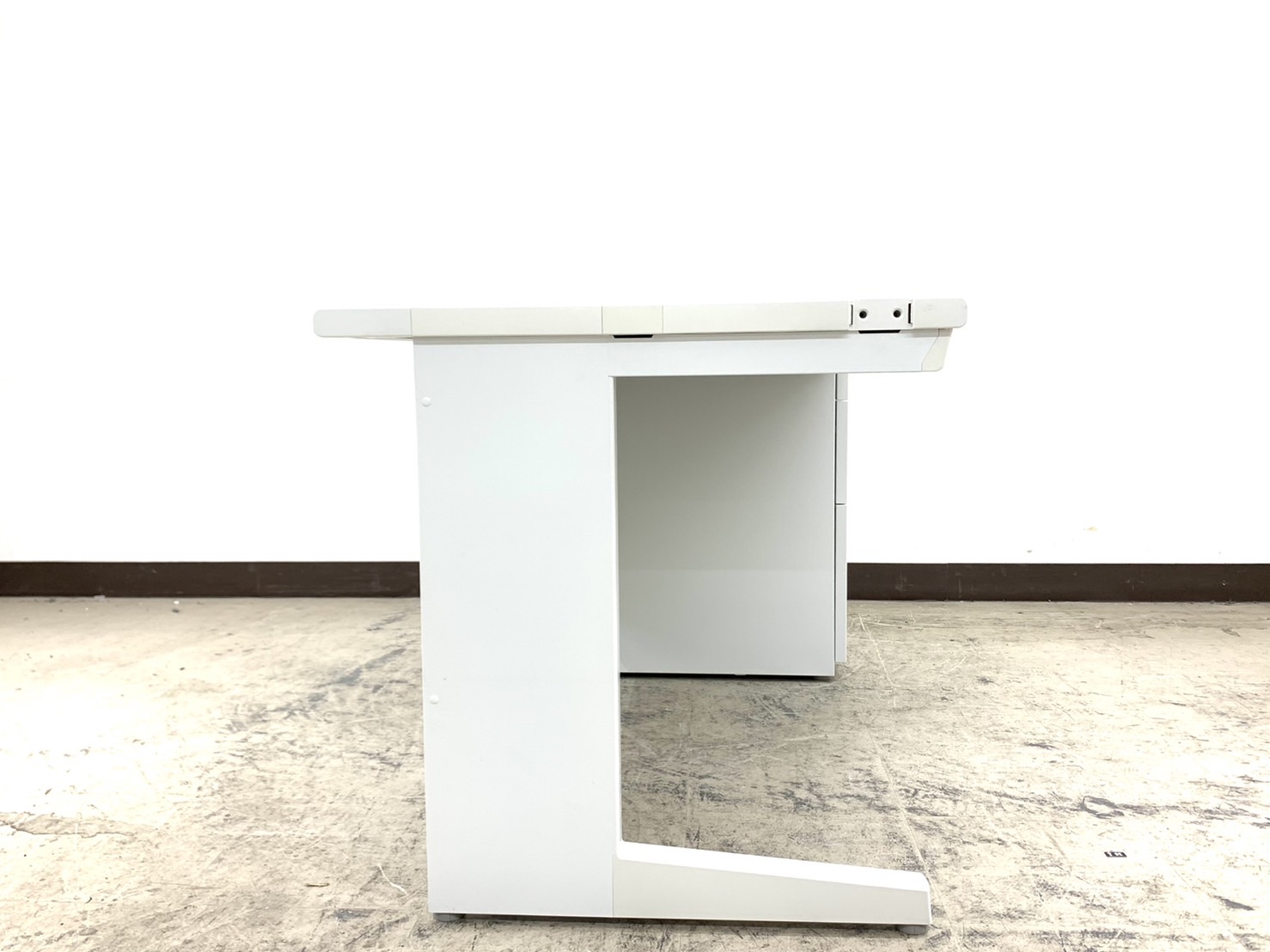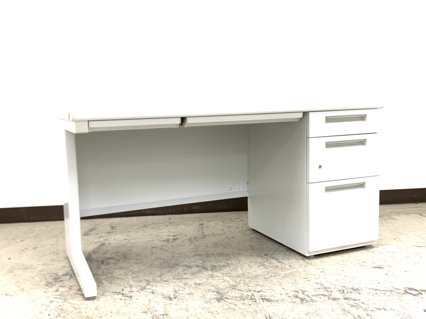 【在庫入替セール】片袖机 イナバ デュエナ W1400のおおきめサイズ 清潔感のあるホワイトカラー 鍵付き ※天板ふちにキズの補修跡あり