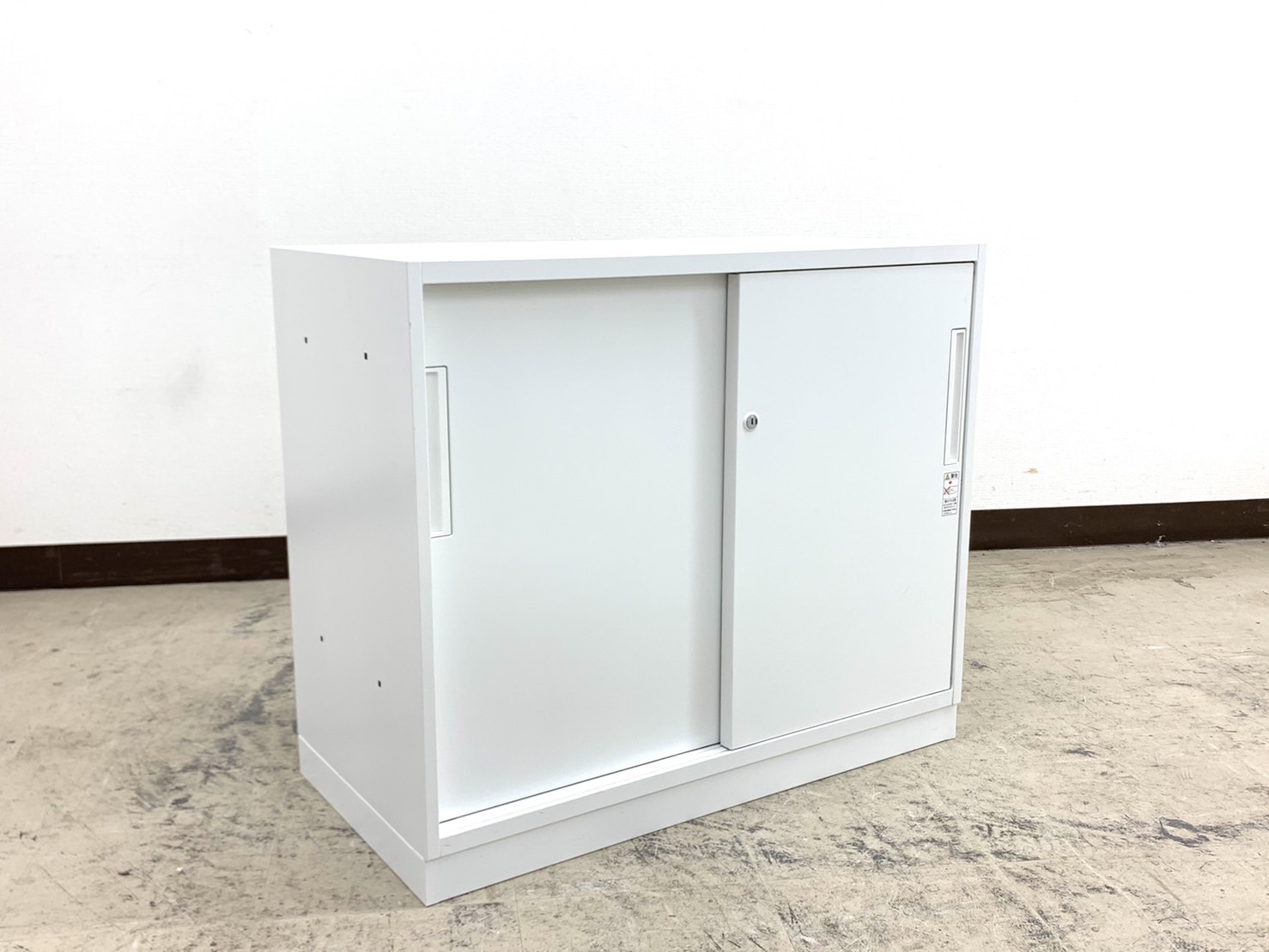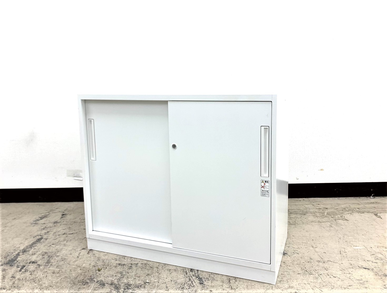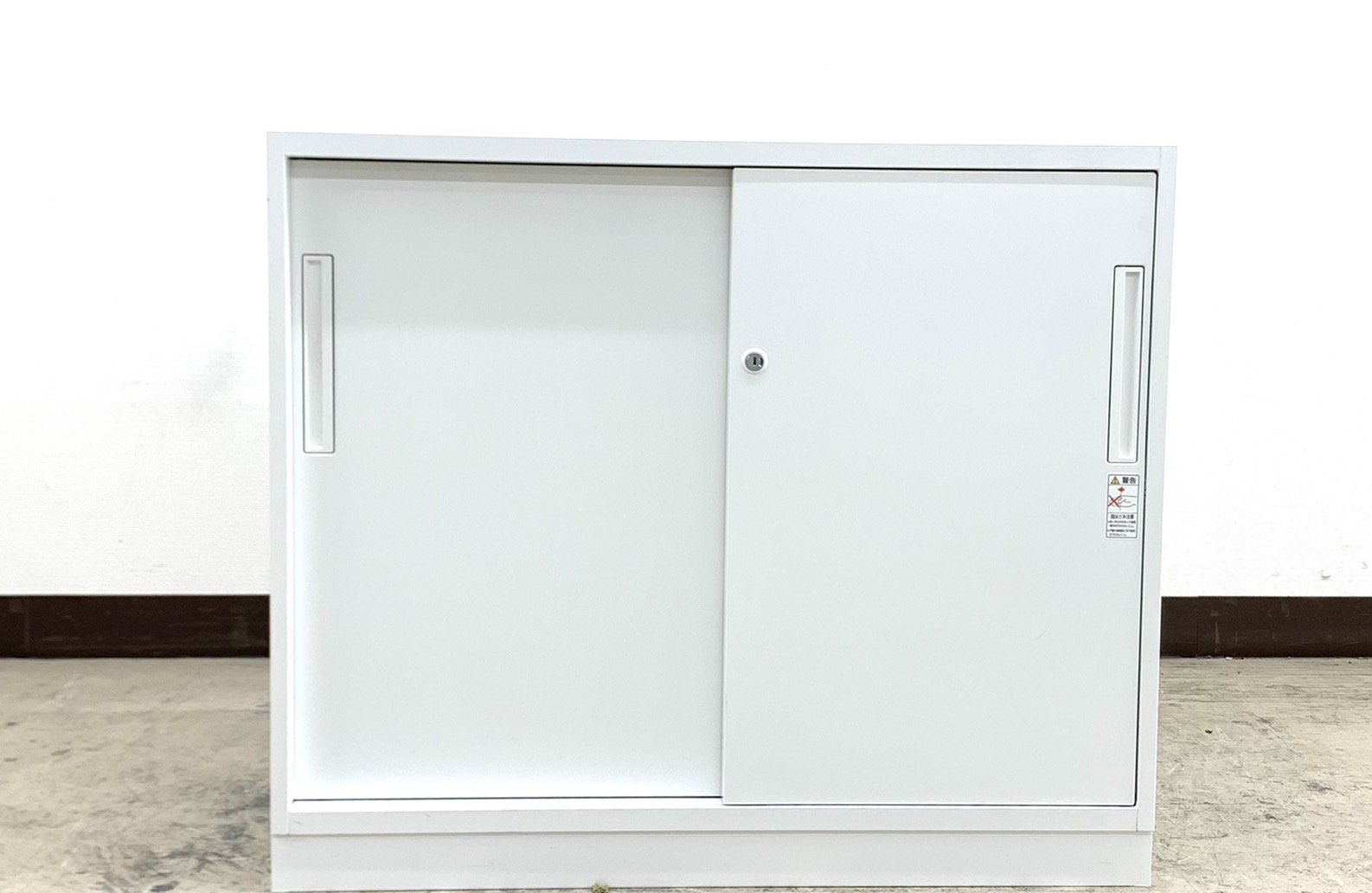 【スライド引き戸だから開閉スペースに困らない!】■コクヨ(KOKUYO)製 エディア(EDIA)シリーズ 2枚引き違い書庫 ローキャビネット シリンダー錠 天板付き ベース付き ホワイト シリンダー錠 収納 中古家具 格安 福岡 オフィス家具 九州最大級《オフィスバスターズ福岡博多店は、福岡を拠点として、日本全国へ中古オフィス用品・オフィス家具を提供しております》