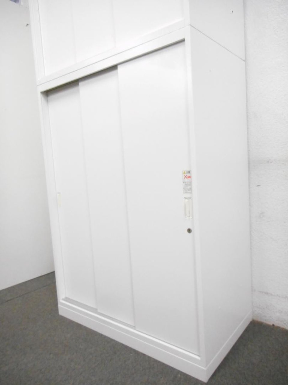 スライド式の扉+引き出しタイプの便利な書庫セットが入荷!使い勝手抜群のハイキャビネットが入荷! ■オカムラ/レクトライン/ホワイト 2枚引き戸+3段ラテラルキャビネット