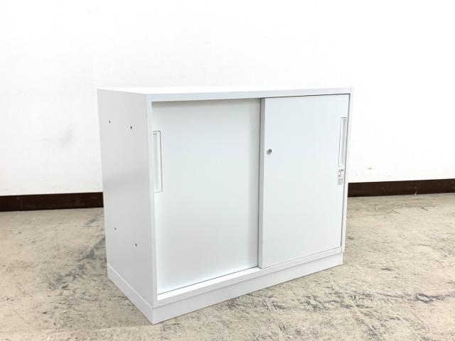 【スライド引き戸だから開閉スペースに困らない!】■コクヨ(KOKUYO)製 エディア(EDIA)シリーズ 2枚引き違い書庫 ローキャビネット シリンダー錠 天板付き ベース付き ホワイト シリンダー錠 収納 中古家具 格安 福岡 オフィス家具 九州最大級《オフィスバスターズ福岡博多店は、福岡を拠点として、日本全国へ中古オフィス用品・オフィス家具を提供しております》