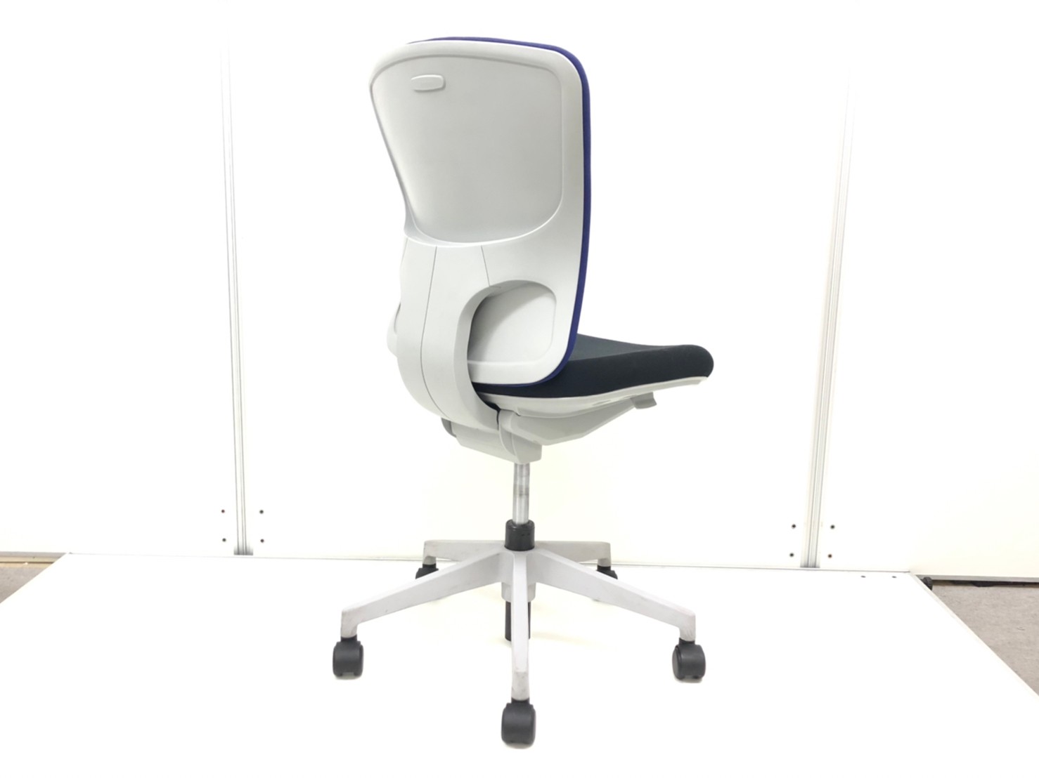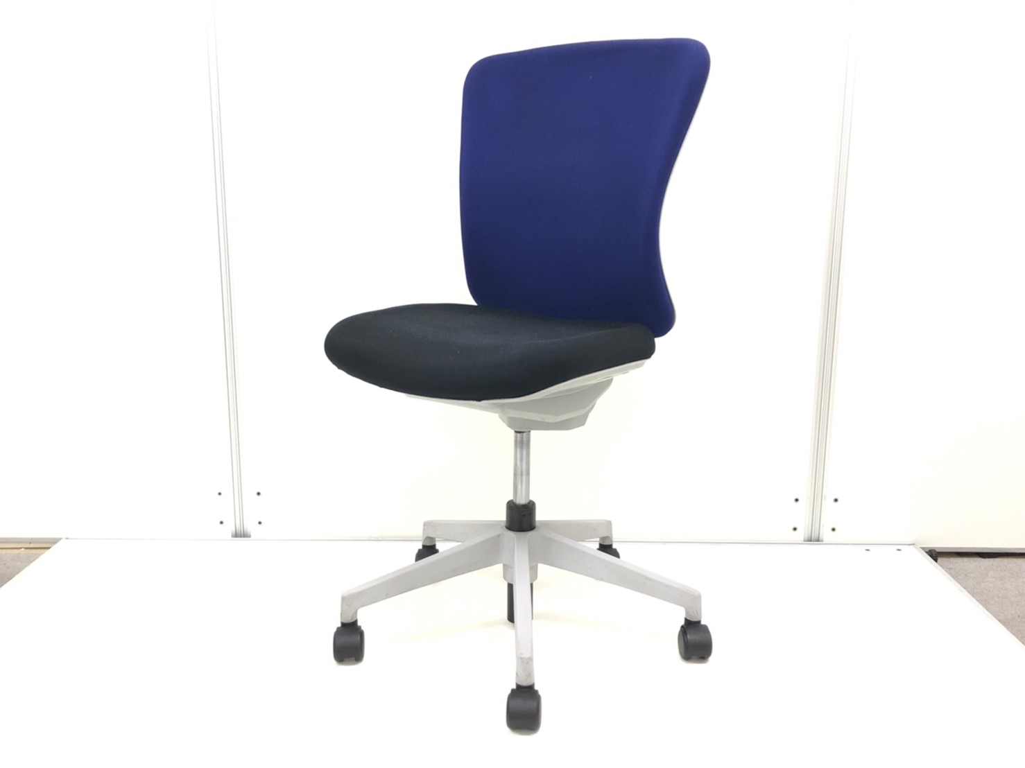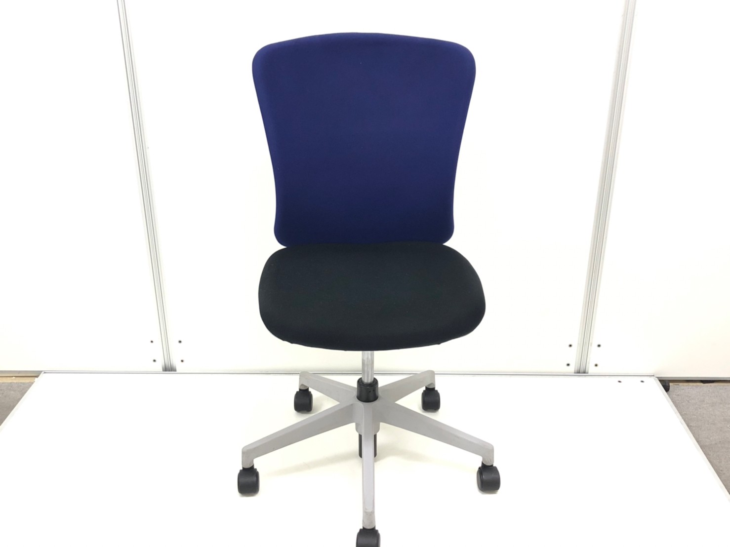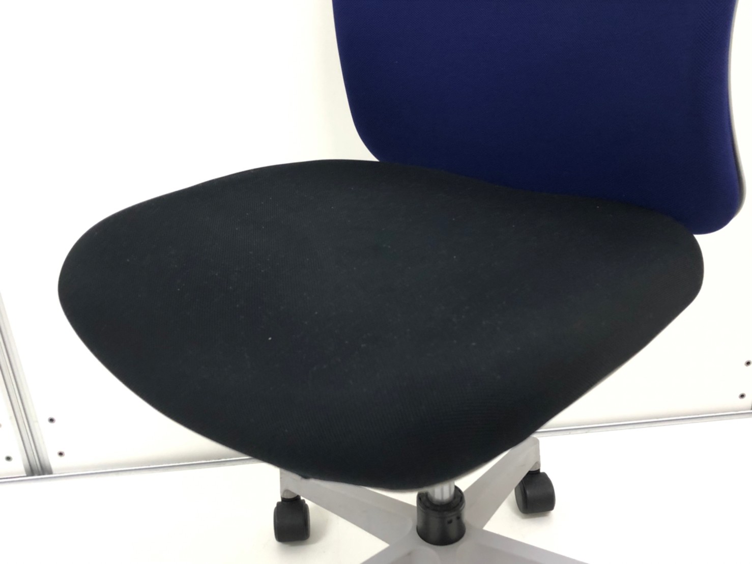 【座面使用感の汚れあり】イナバ製 バルチェシリーズ ブルー×ブラック セルフアジャストメント機構採用であらゆるワークシーンにフィット! スタンダードなデザインで座りやすい 肘無しハイバックチェア!!中古 肘無し ブルー 【K】