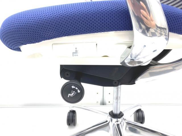 【前傾チルト付!流れるような美しいフォルムの最高級メッシュチェア!】■オカムラ(okamura)製 Sabrina(サブリナ) ハイバック 肘付き ■可動肘 ■背面メッシュ:アクアブルー 座面:ブルー ホワイトフレーム