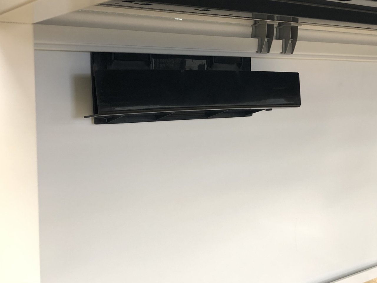 横幅120㎝で、オカムラ製のデザインに優れたオフィス用デスクです。高さも今の規格の720㎜となり、使いやすいサイズです。机天板の後方が配線カバーが一直線になっており、