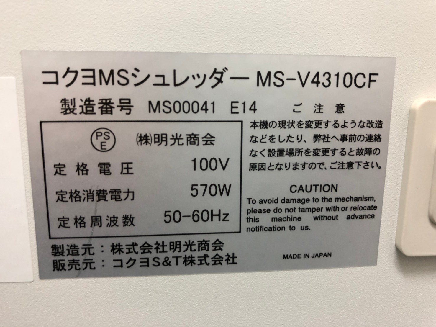 【業務用シュレッダーの入荷】MS-V4310CF- 千葉店