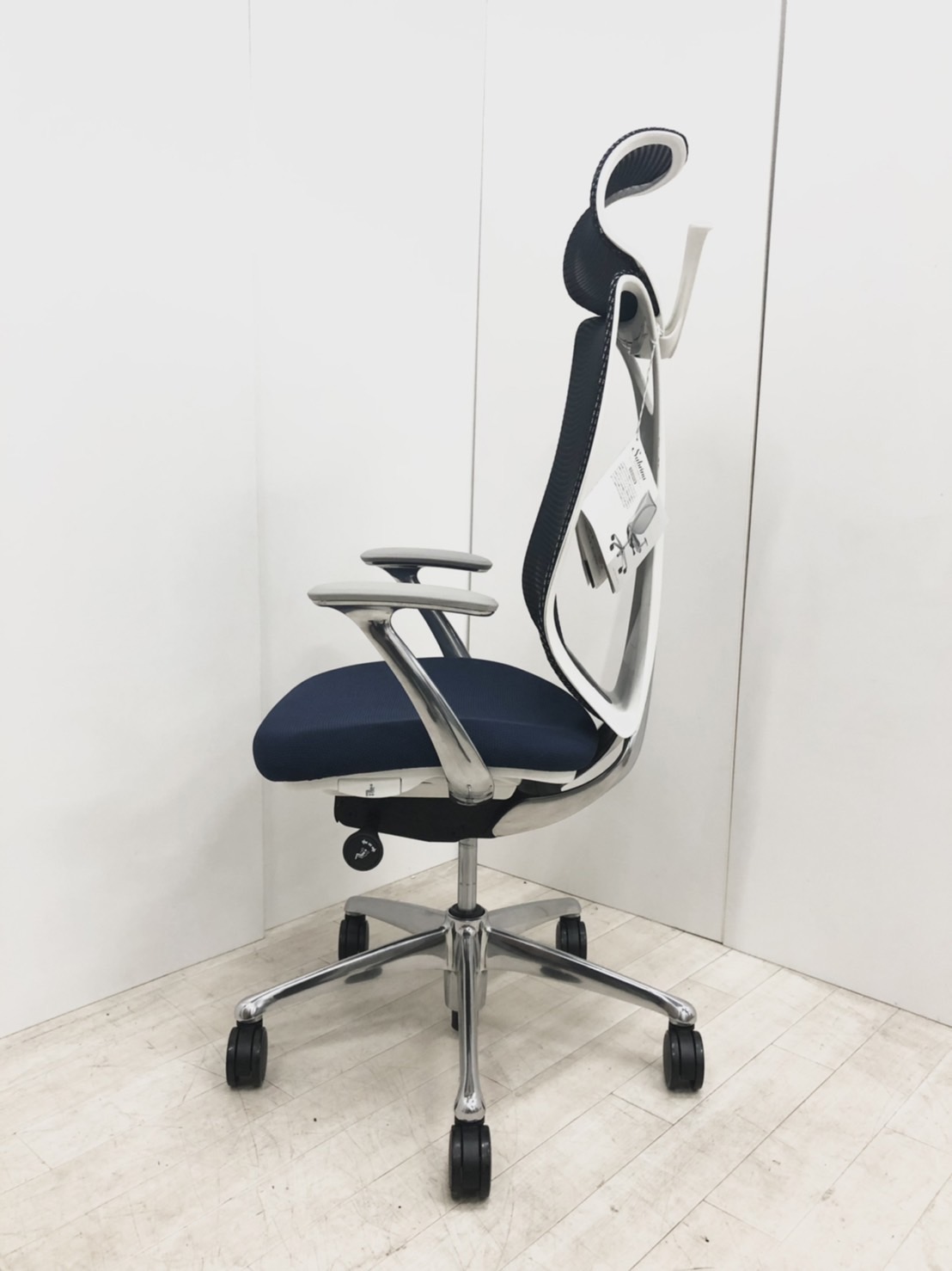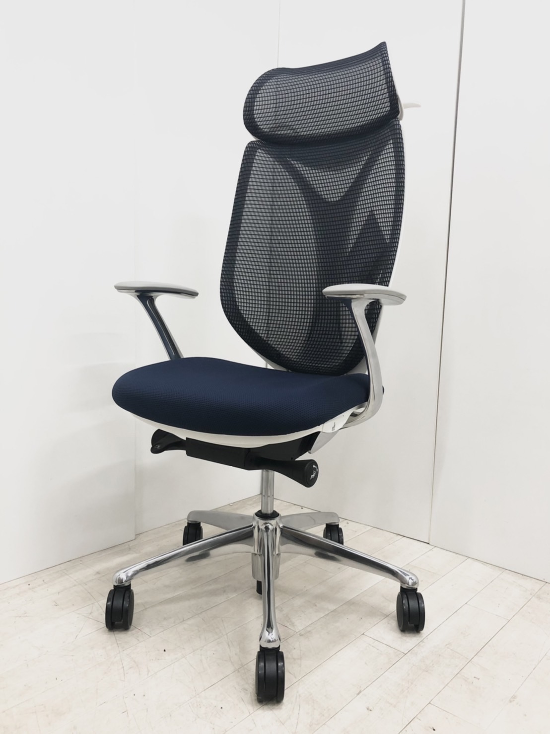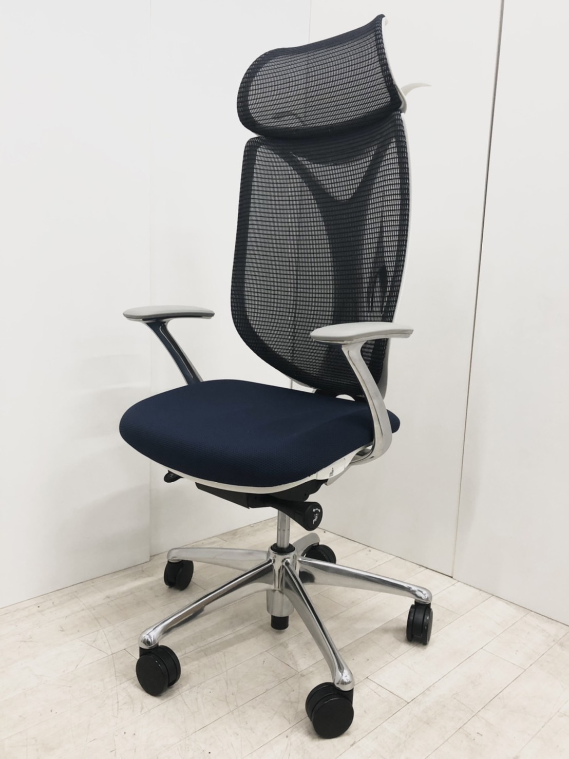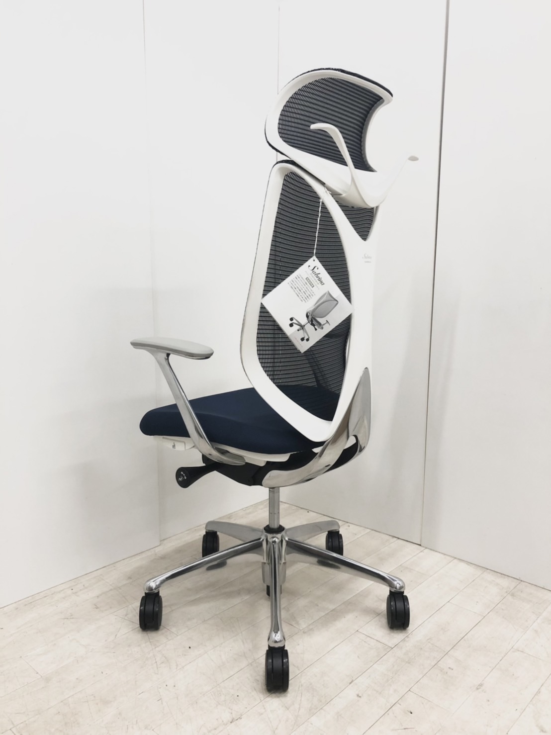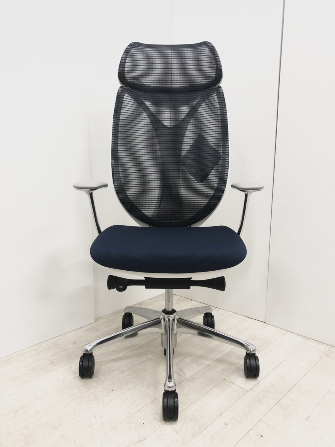 【デザインアーム】【ヘッドレスト】オカムラ/サブリナ/ブルー/ホワイトフレーム- つくば店