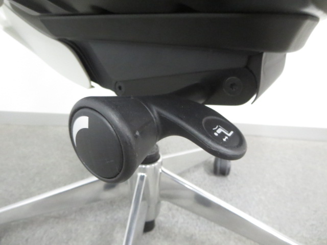 背の両サイドにあるレバーを下の位置にすると緩やかなカーブになり、大柄な人にフィットします。