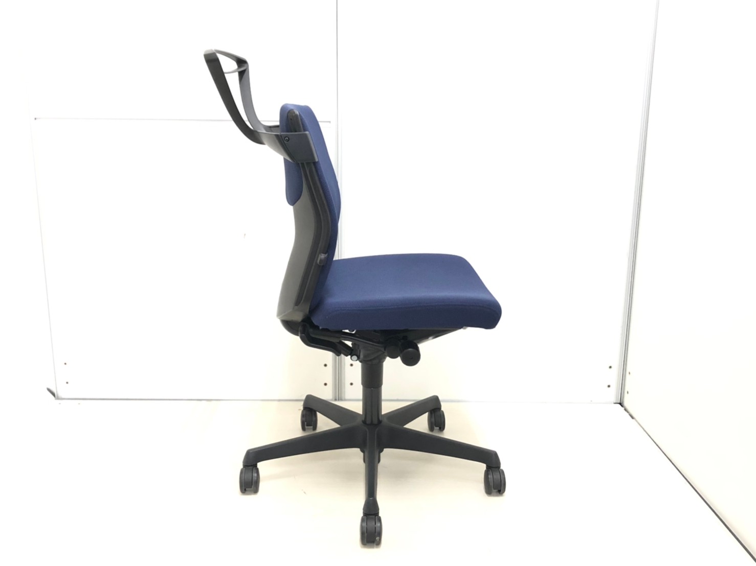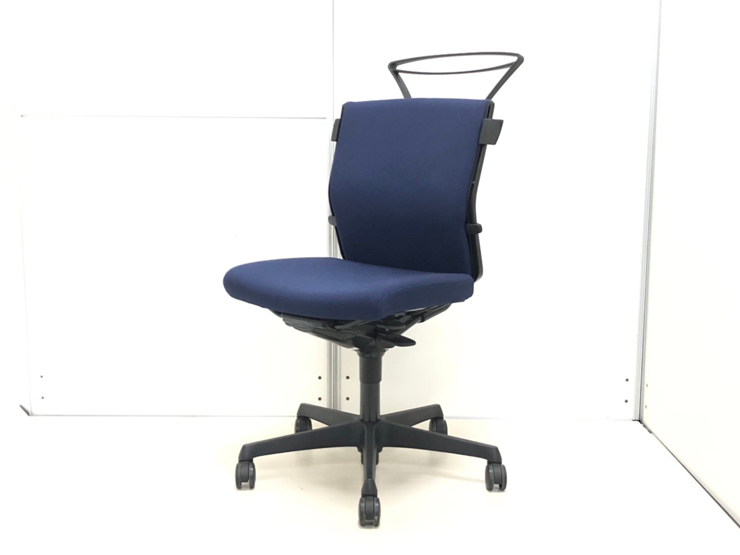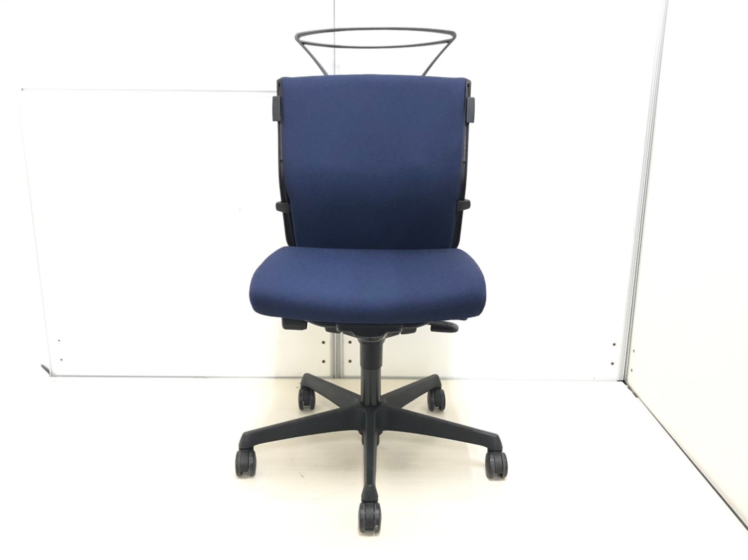 【長時間のデスクワークもランバーが快適にサポート!】■okamura(オカムラ)製 エスクードチェア ローバック 色:ダークブルー 肘無し