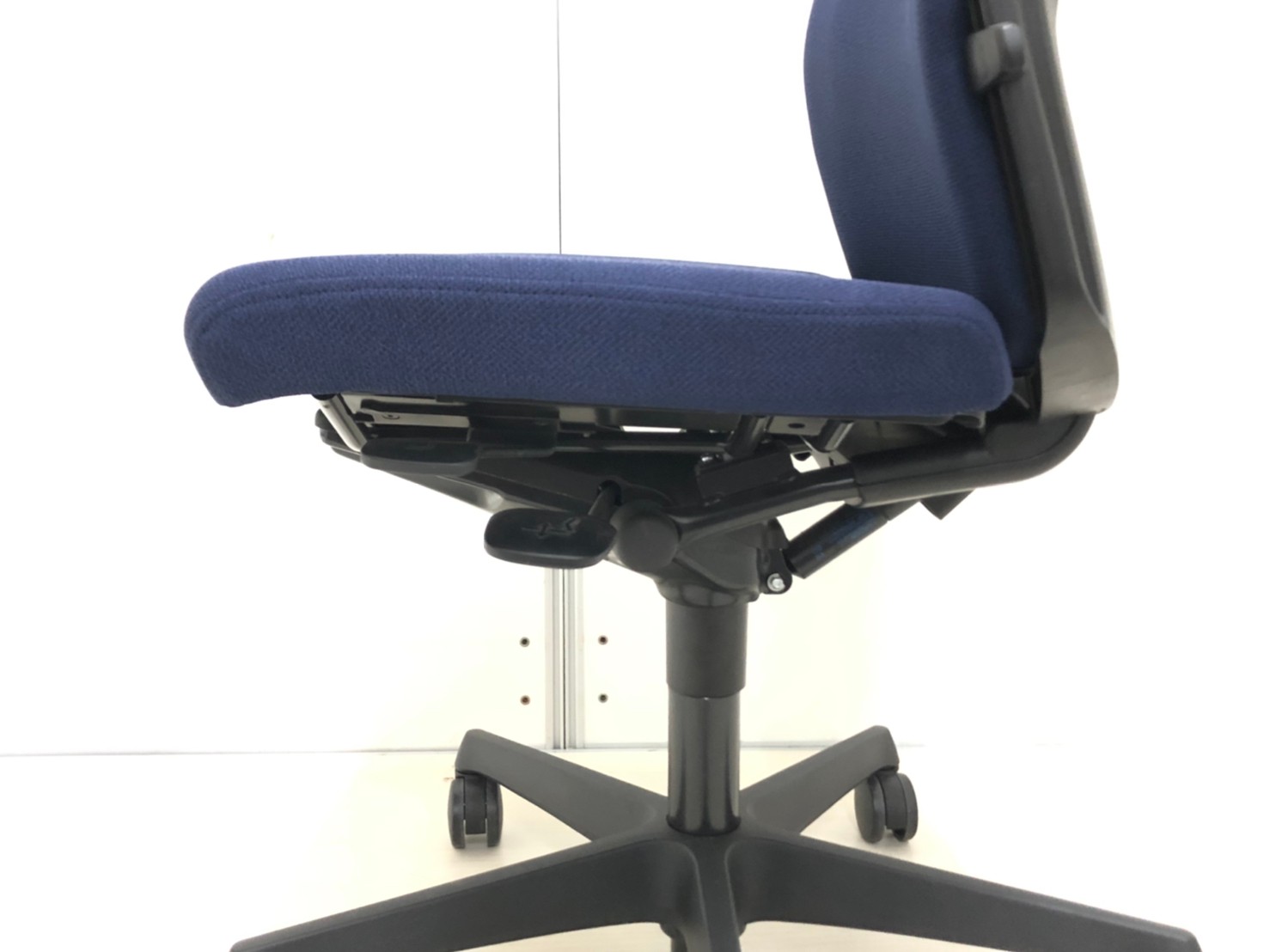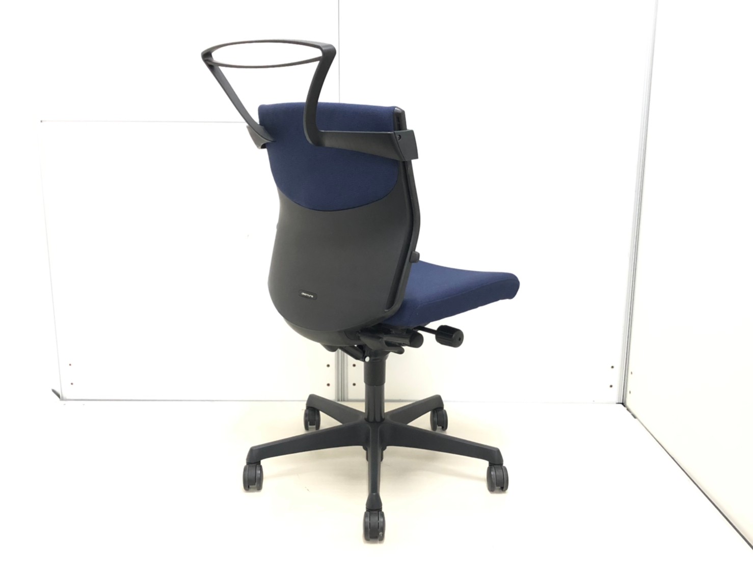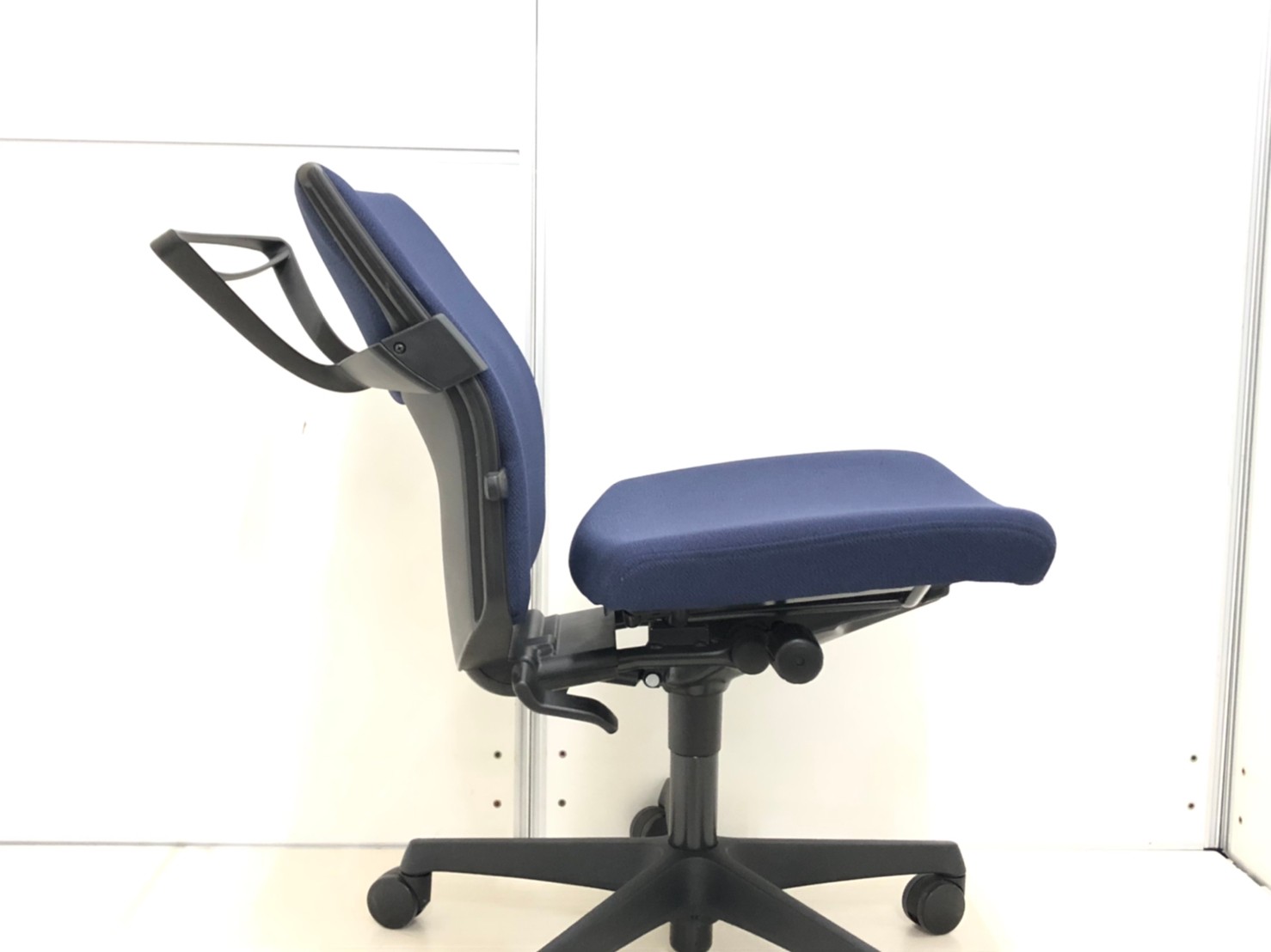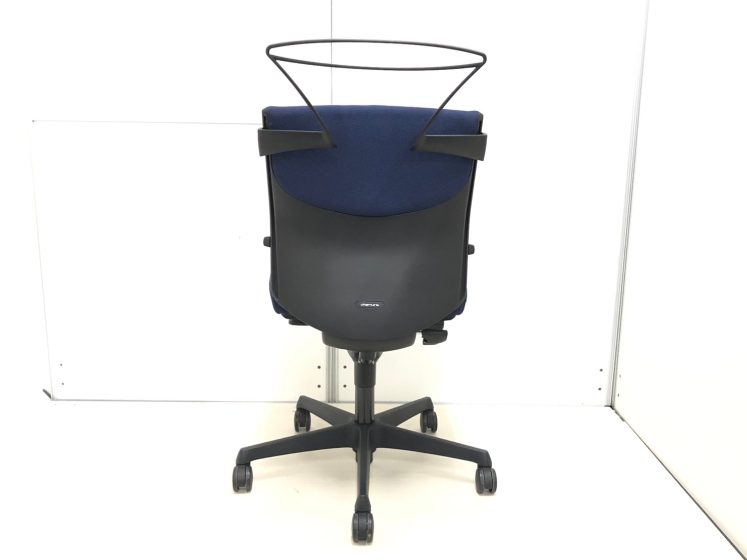 【長時間のデスクワークもランバーが快適にサポート!】■okamura(オカムラ)製 エスクードチェア ローバック 色:ダークブルー 肘無し