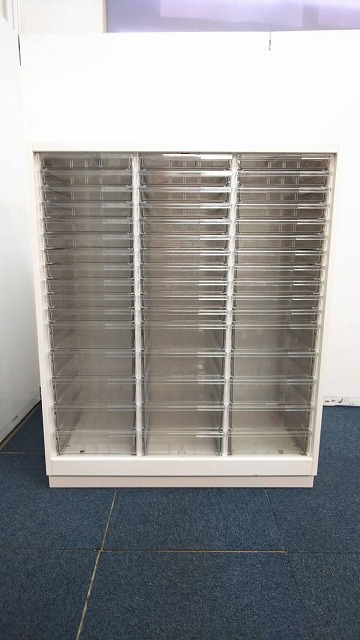 【書類・備品整理の必需品!】【珍しいクリトレが入荷!3列×浅型11段+深型5段】■イトーキ(ITOKI)製 シンラインシリーズ クリスタルトレー ローキャビネット ■3列×浅型11段+深型5段 ■天板・ベース付 ■色:ホワイト