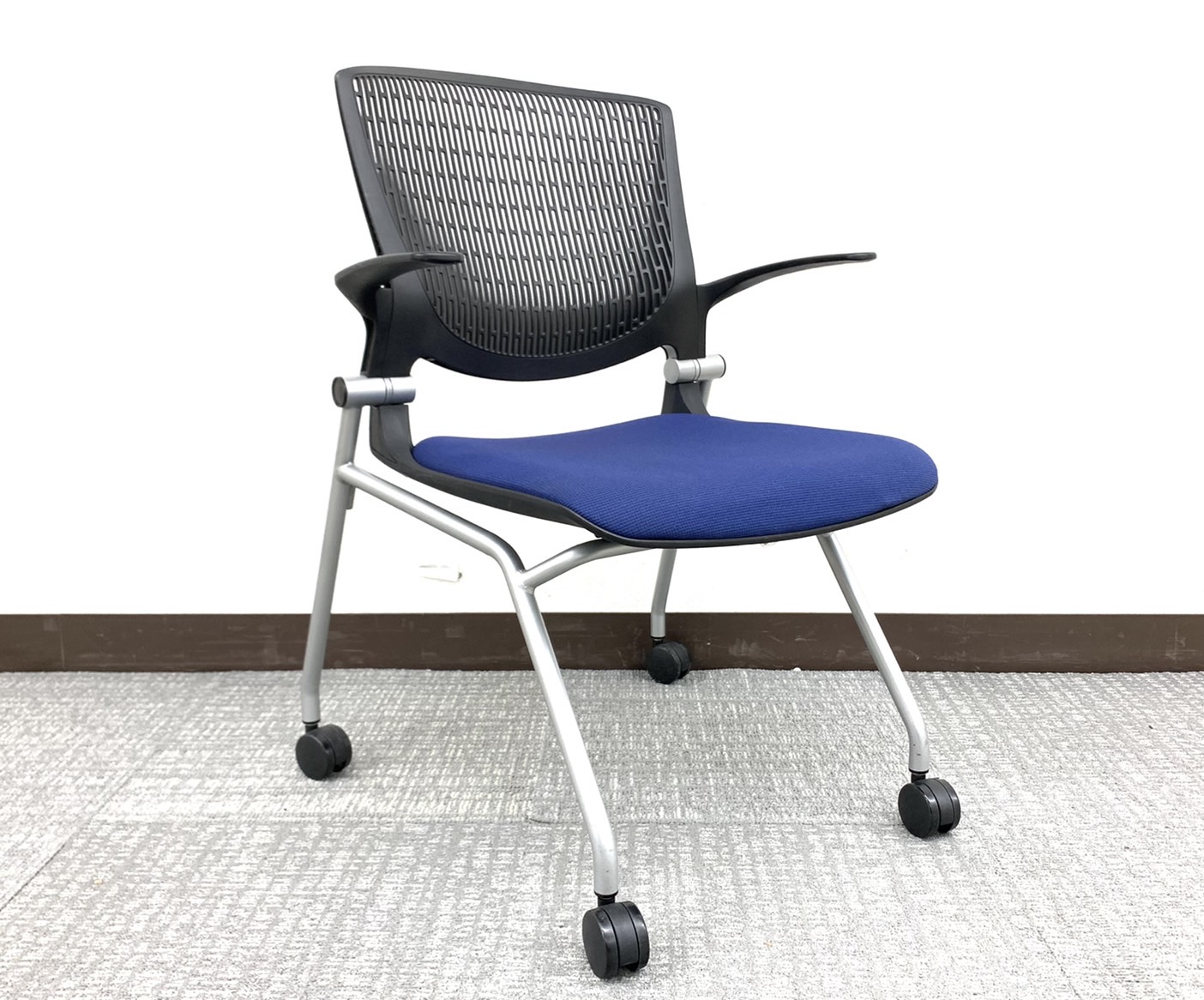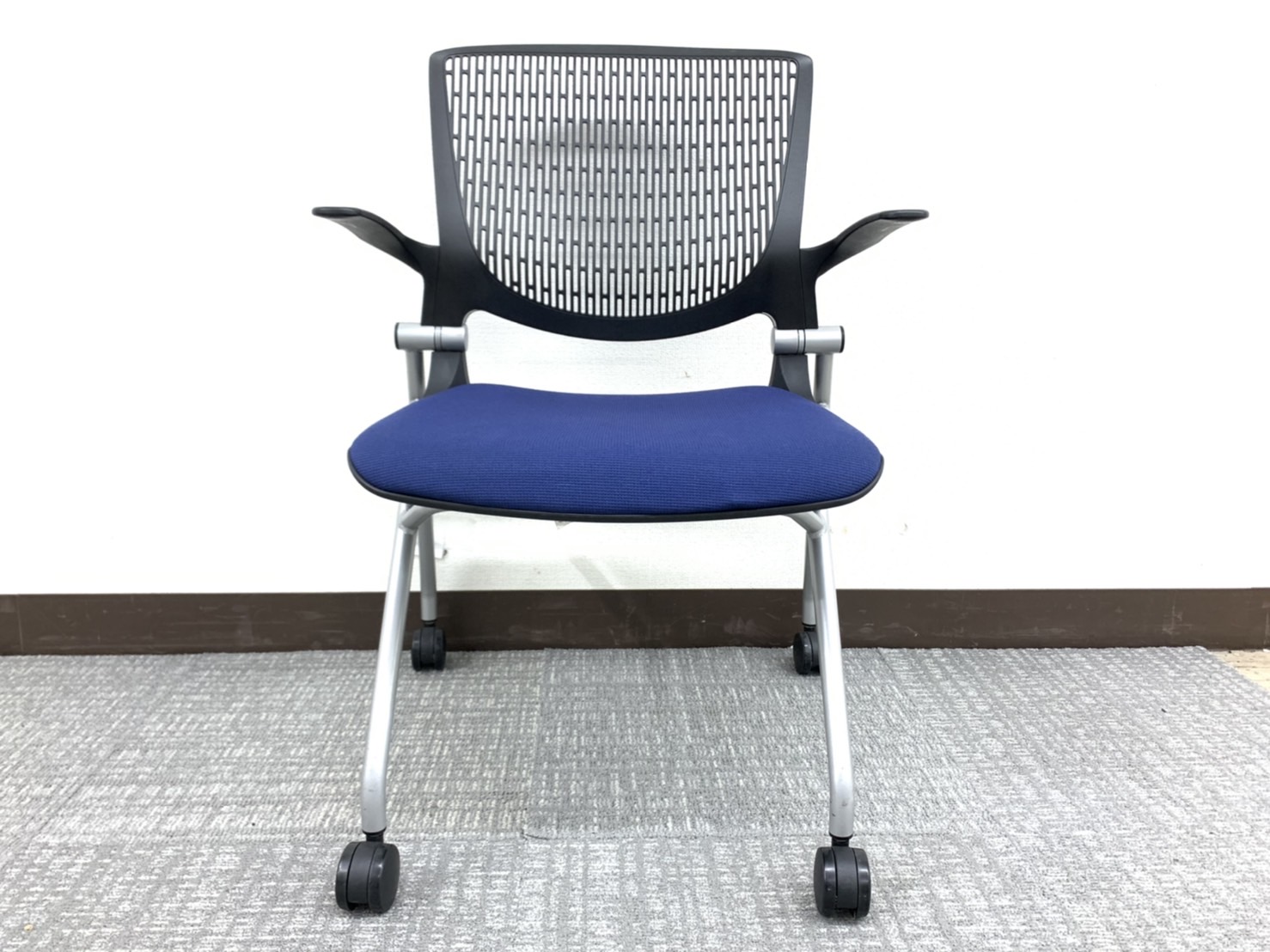 【3脚入荷】会議はかどる上質ミーティングチェア⇒ネイビー&ブラック※肘掛け&キャスター付き仕様◆オカムラ製【RP】サーキュラーバリューCO2削減量の算出について