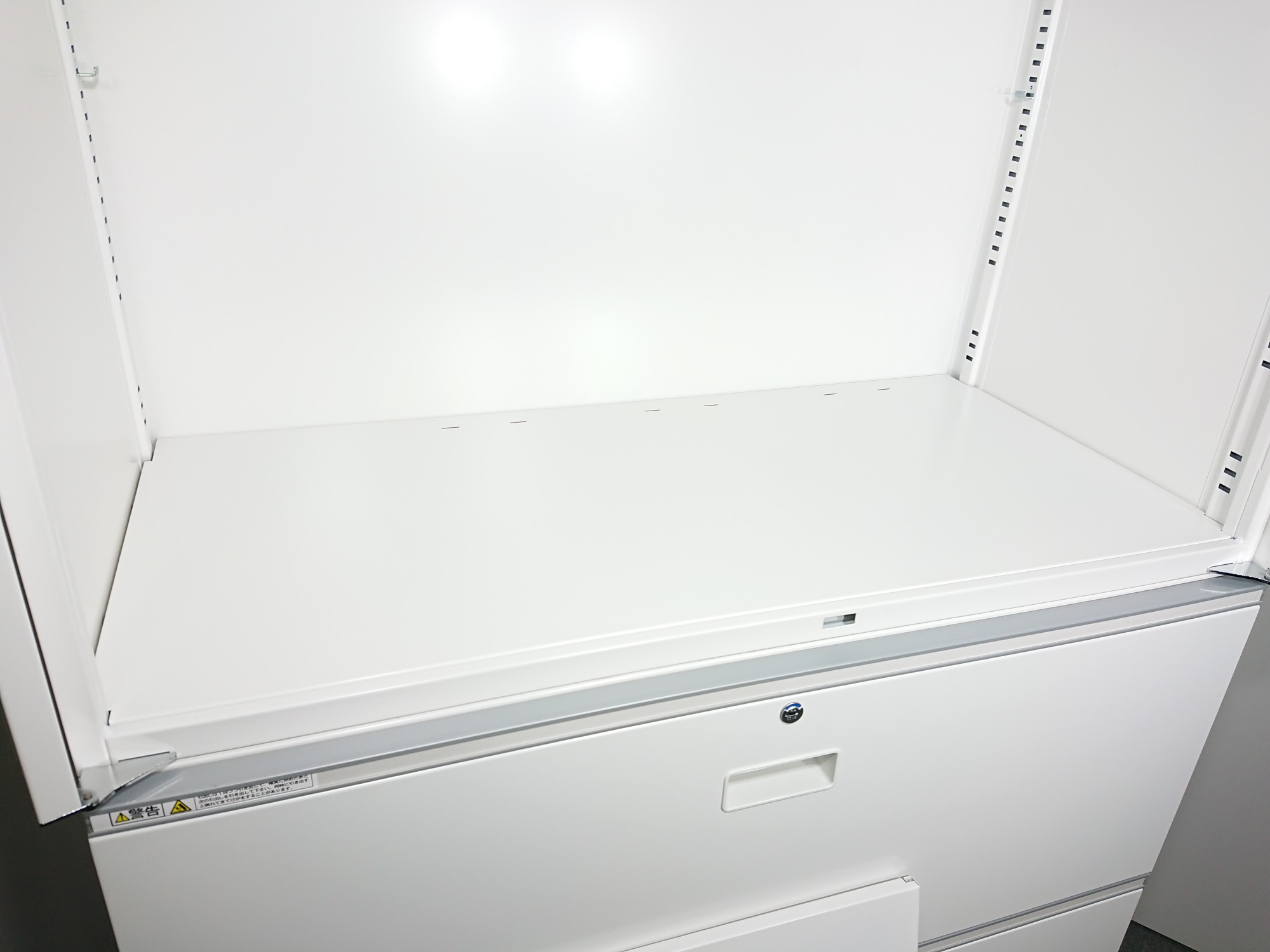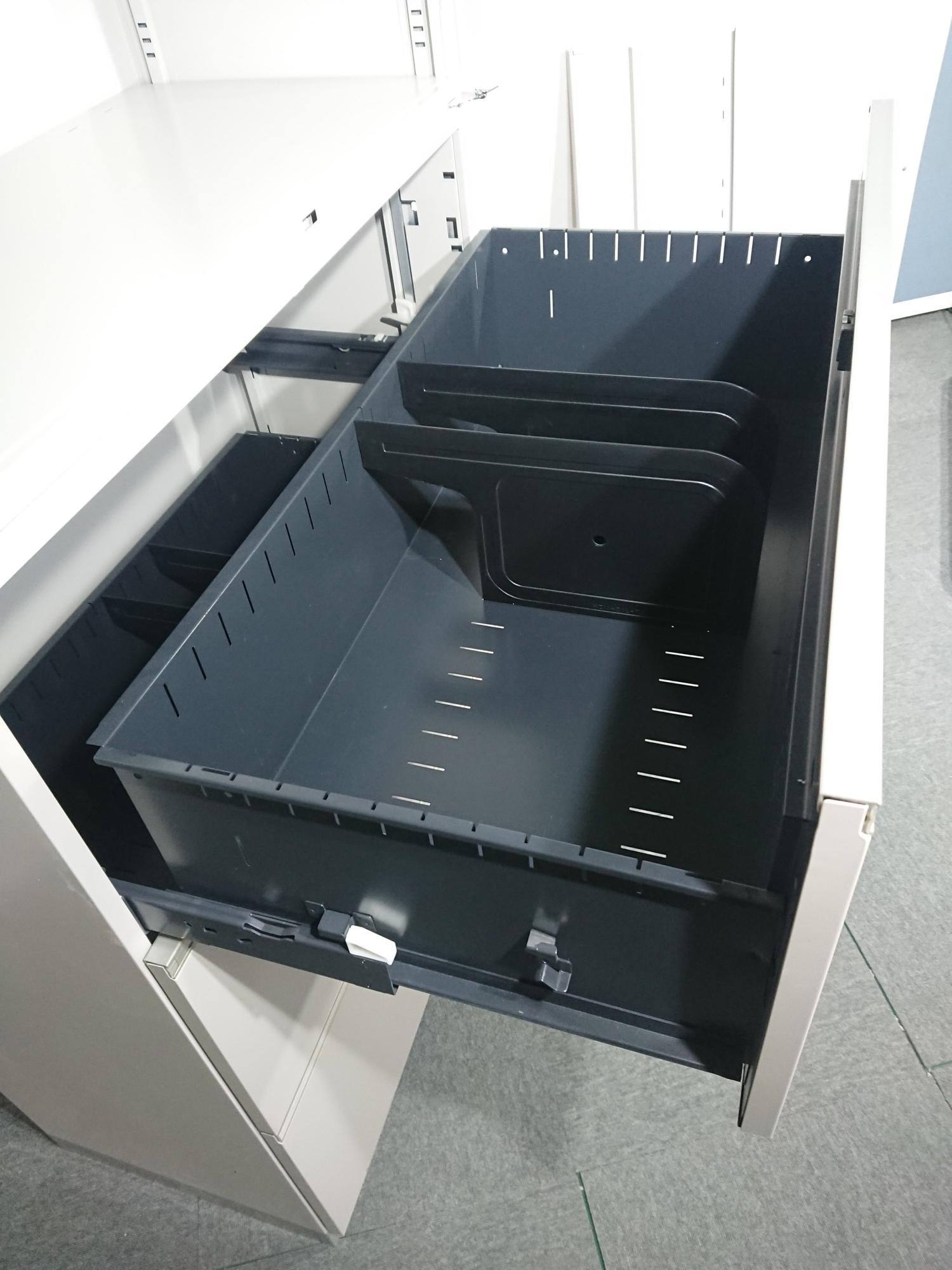 - 一部不具合ありそ引出の開閉不可、施錠不可、棚板無しといったの書庫の本来の効用を果たすための機能以外の一部が使用不可(例、扉、引出の開閉がしづらいなどがある。 )