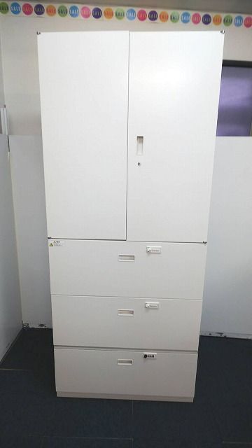 両開き書庫とレアなダイヤル式鍵の三段ラテラル書庫のセットになります!!