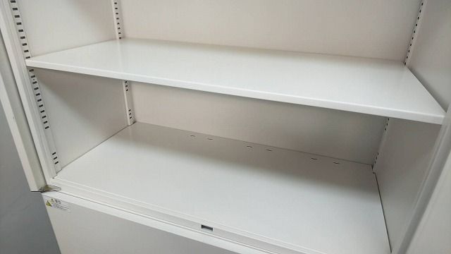両開き書庫は棚板の位置を書類の大きさにより変えられるので、大小問わず並べられます!!