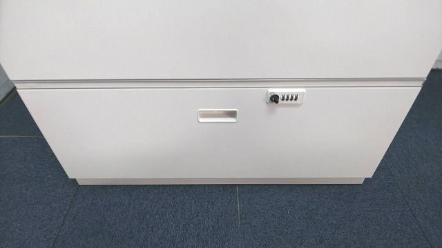 ※3段ラテラル書庫の3段目の引き出しが上2段デザインが違いダイヤルの色がブラックの為
