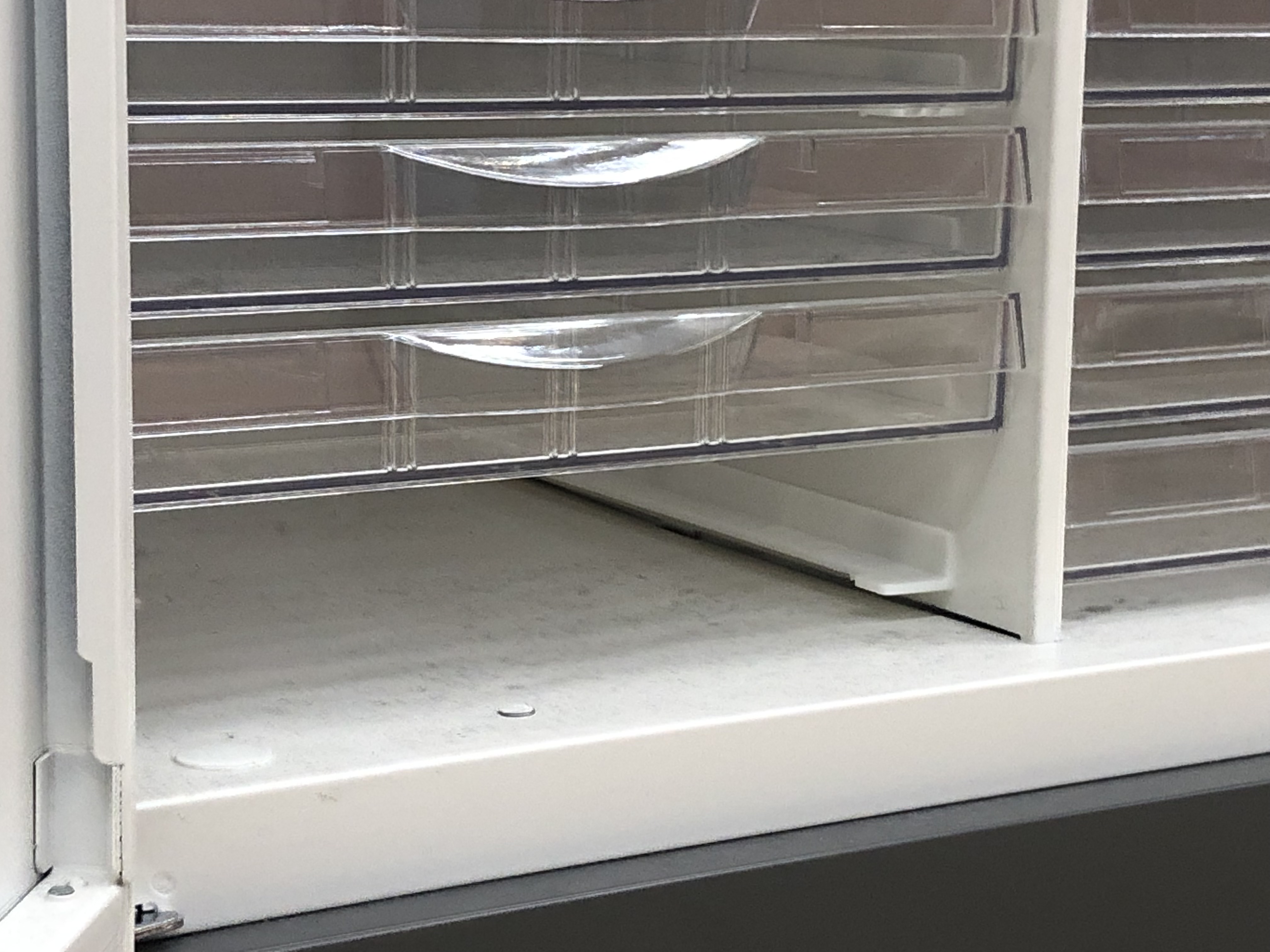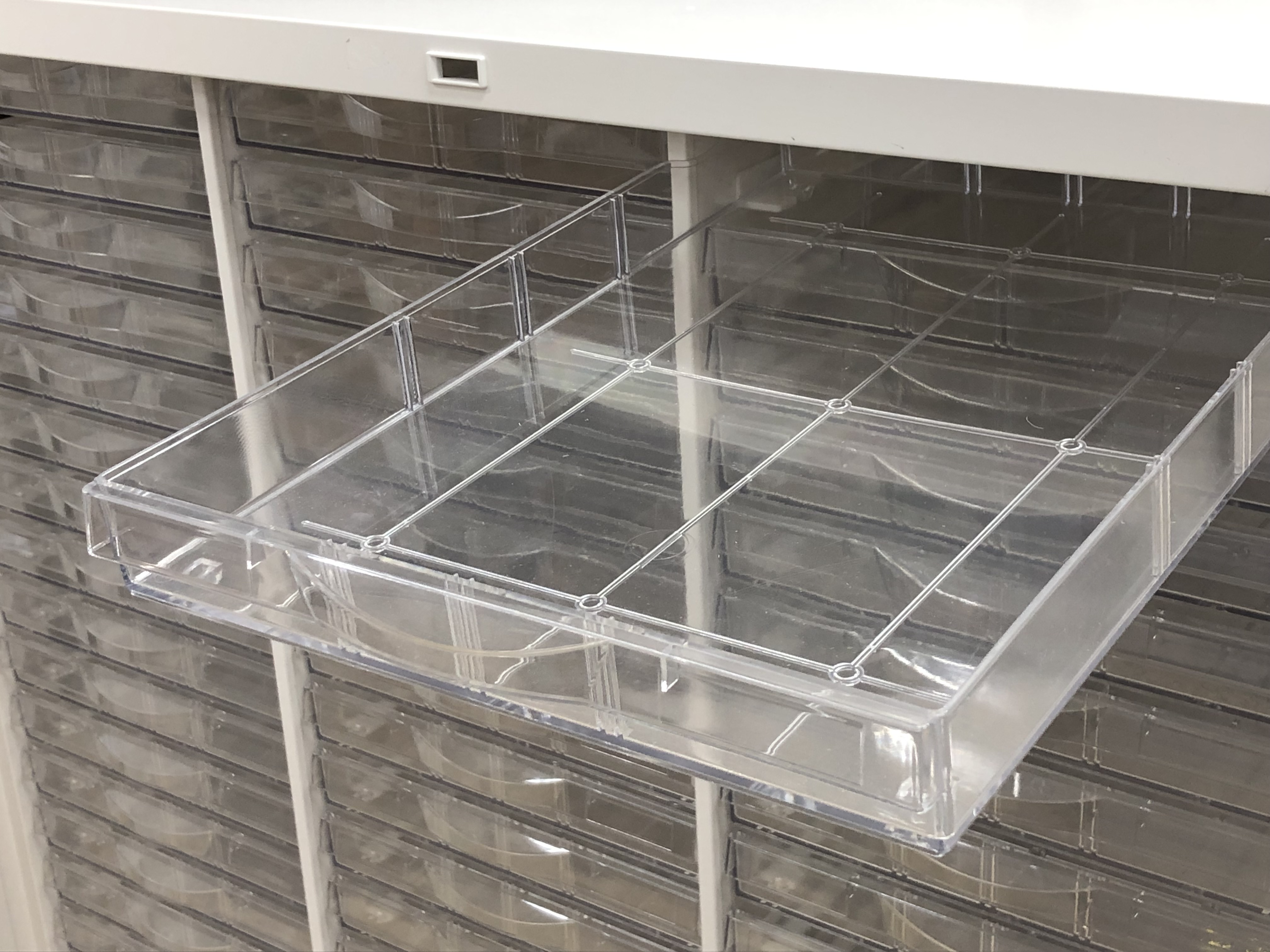 引き出しは透明プラスチック製で外から書類を確かめることができます。