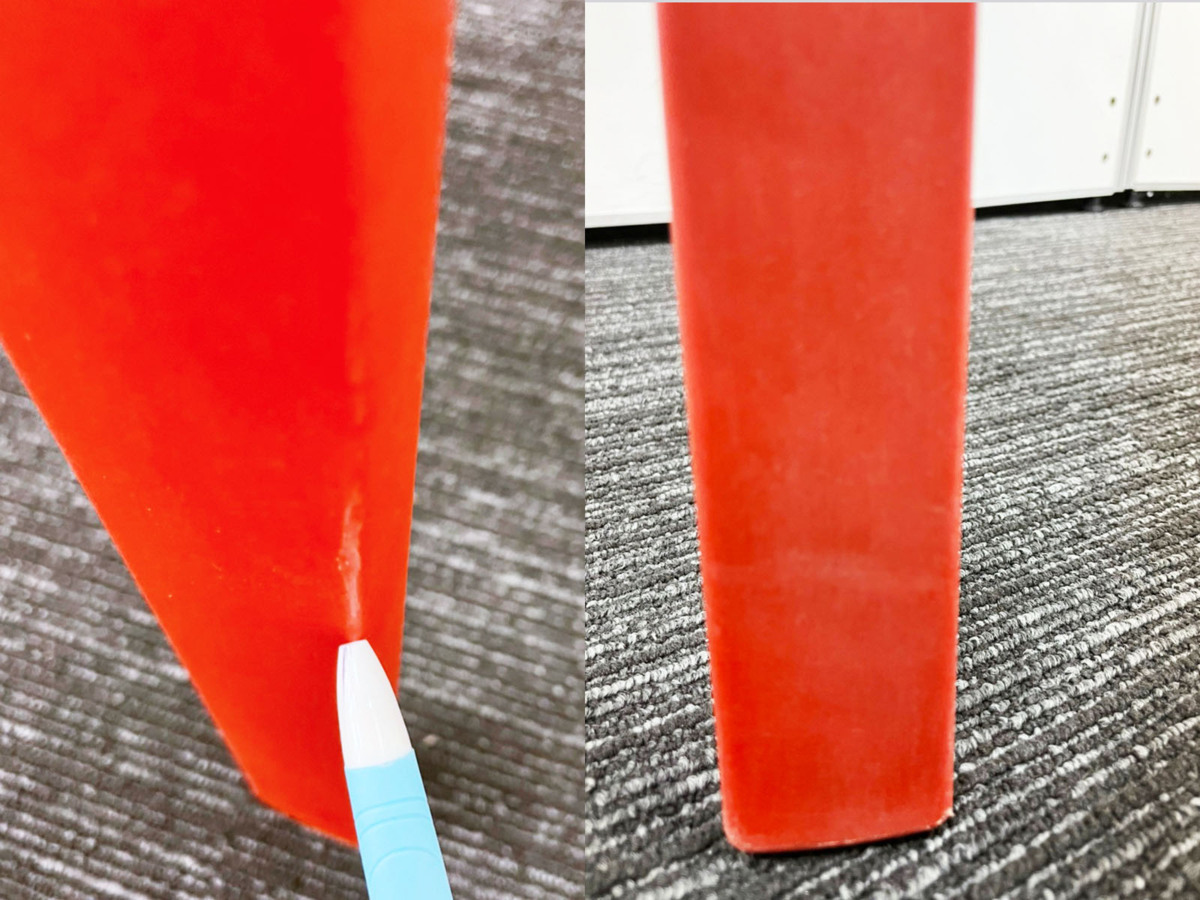 - 目立つ箇所あり傷・破れ・ほつれ・へたり・しわが多数または深い傷・破れ・ほつれ・へたり・しわが一部ある。※座面・背もたれ、シェル、脚部等にある。