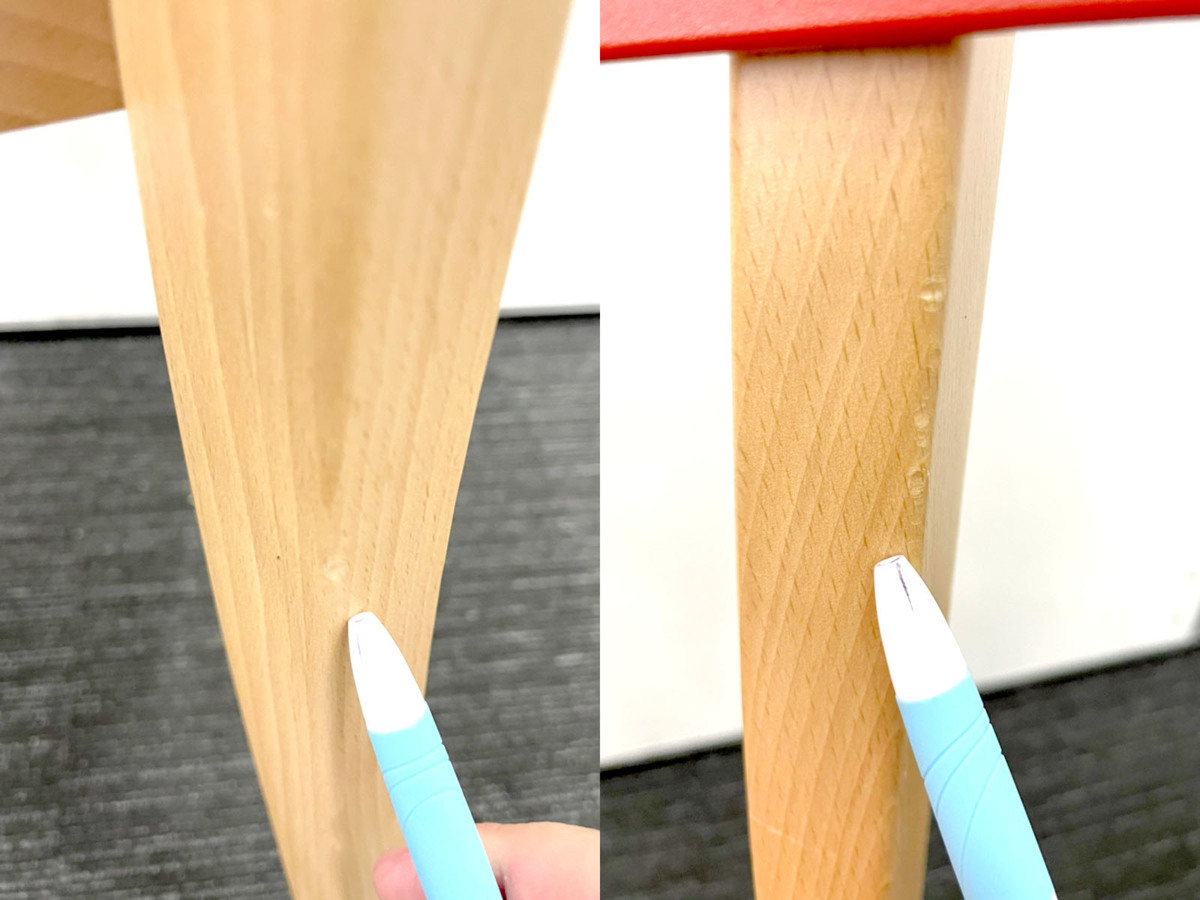 - 目立つ箇所あり傷・破れ・ほつれ・へたり・しわが多数または深い傷・破れ・ほつれ・へたり・しわが一部ある。※座面・背もたれ、シェル、脚部等にある。