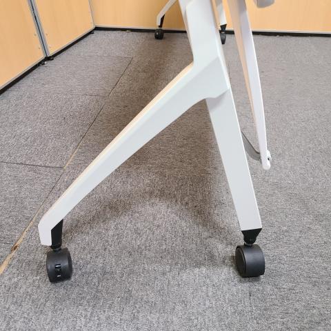 squto(スクート)は、イトーキのミーティングテーブル。折りたたんで平行スタッキングが可能です。スチール幕板ではマグネット付きの電源タップなどが格納できるダクト部を設置。また、テーブルを並べて使用する際、天板の高さが合わないときに高さを微調整できるよう、キャスターにアジャスト機構が付いており、並べて使用しやすいミーティングテーブルです。