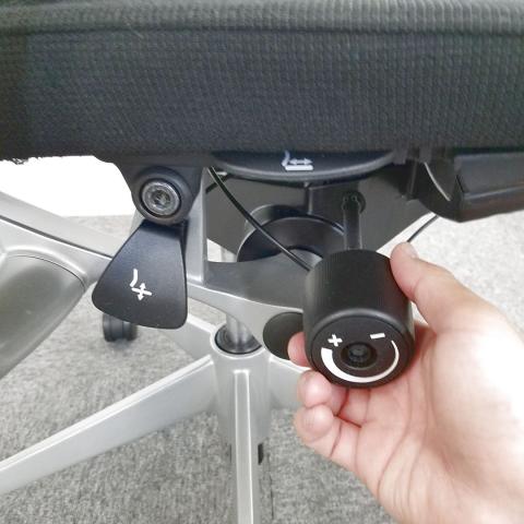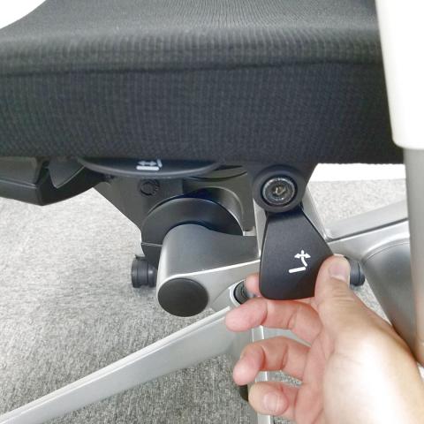 - 座面の右下にあるレバーの操作により座面位置を上下に100mm分調整することが可能です。