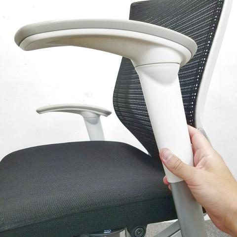- アームパッドは90°(内60°:2段階、外30°)の角度調節が可能。コンピュータ操作時などに肘全体をやさしくサポートします。