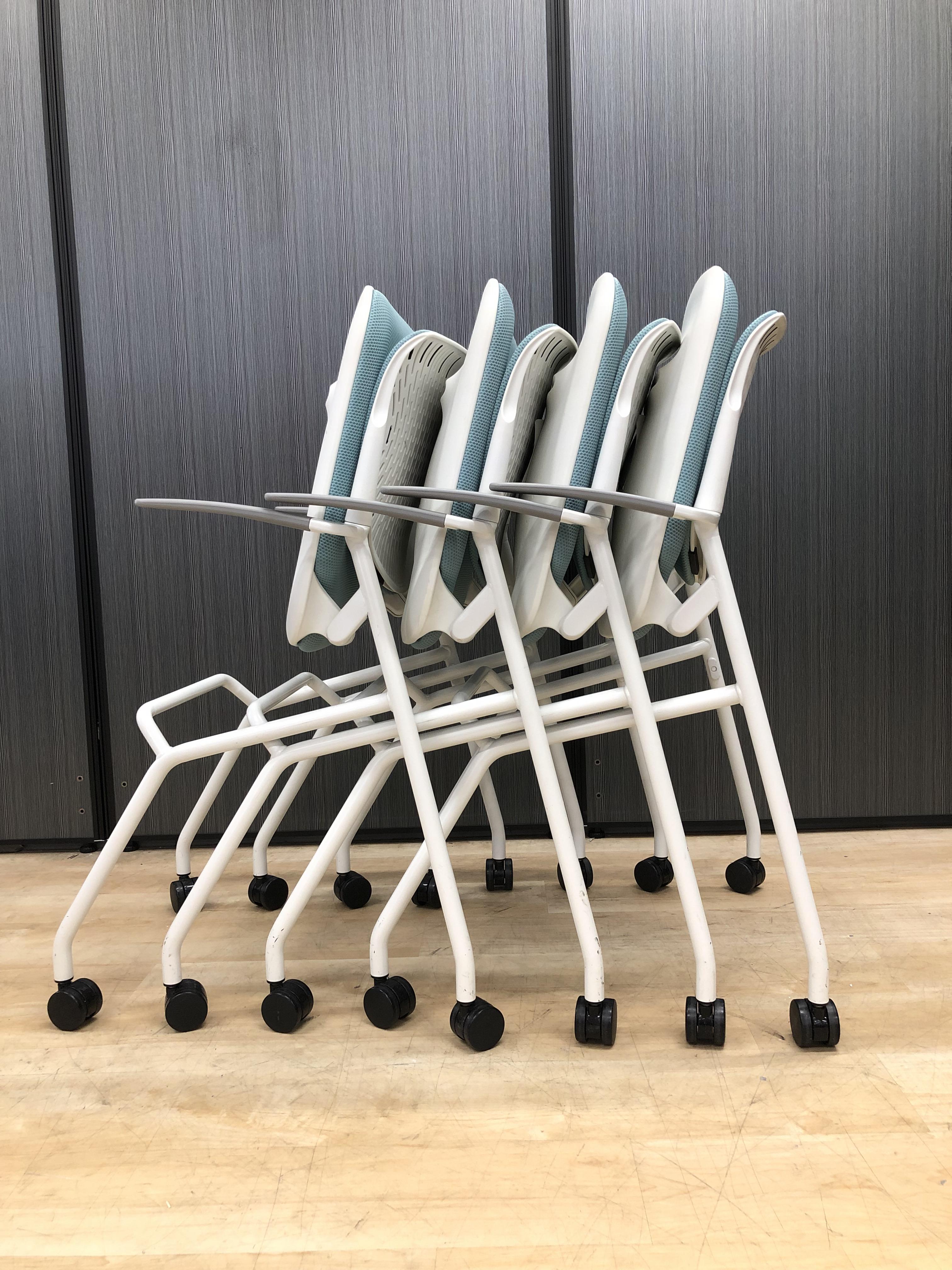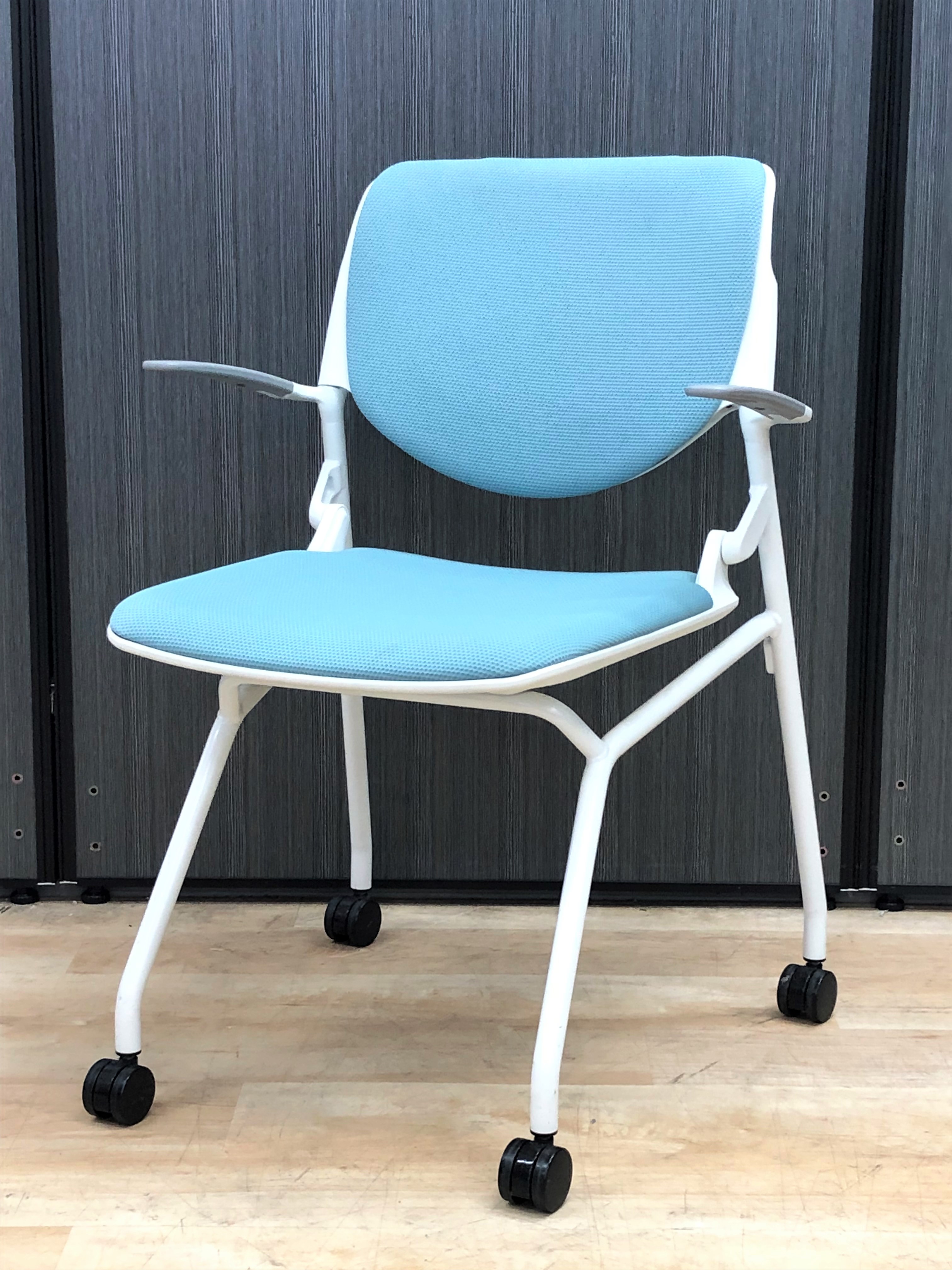 【関東倉庫在庫品】【フレキシブルに使える!使わない時は省スペースで収納可能!】■オカムラ製 ルナ ネスティングチェア ■ライトブルー【弊社使用欄:A01008468】【ECBMC】