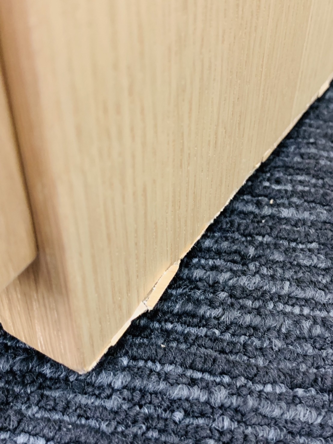 - 目立つ箇所複数あり深い傷・凹みが商品全体にある。(例、天板、正面、背部、サイド部分にある。)