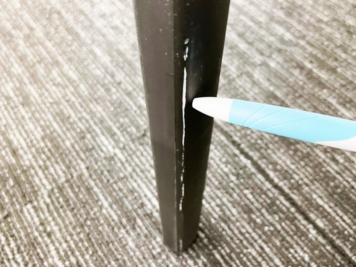 - あり黄ばみ・変色が広い範囲にうっすらある、または濃い黄ばみ・変色が一部ある。(例、座面・背もたれ、脚部等にある。)