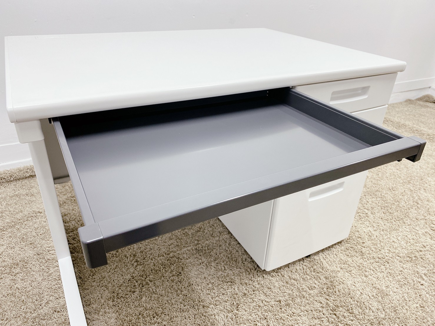 スタンダードなデザインで、収納便利な袖引き出し付き。