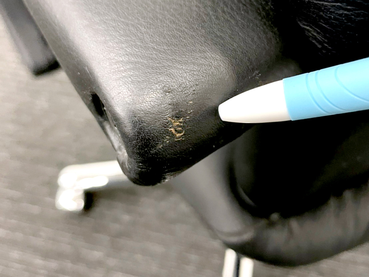 - 目立つ箇所あり傷・破れ・ほつれ・へたり・しわが多数または深い傷・破れ・ほつれ・へたり・しわが一部ある。※座面・背もたれ、シェル、脚部等にある。
