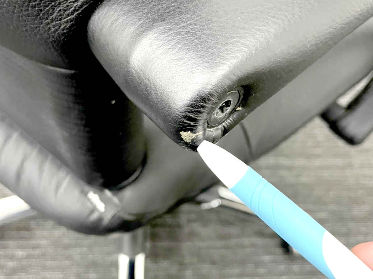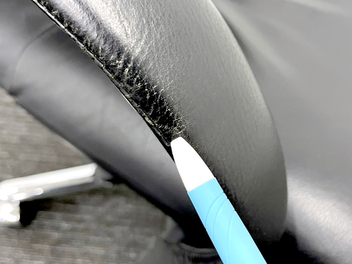 - あり黄ばみ・変色が広い範囲にうっすらある、または濃い黄ばみ・変色が一部ある。(例、座面・背もたれ、脚部等にある。)