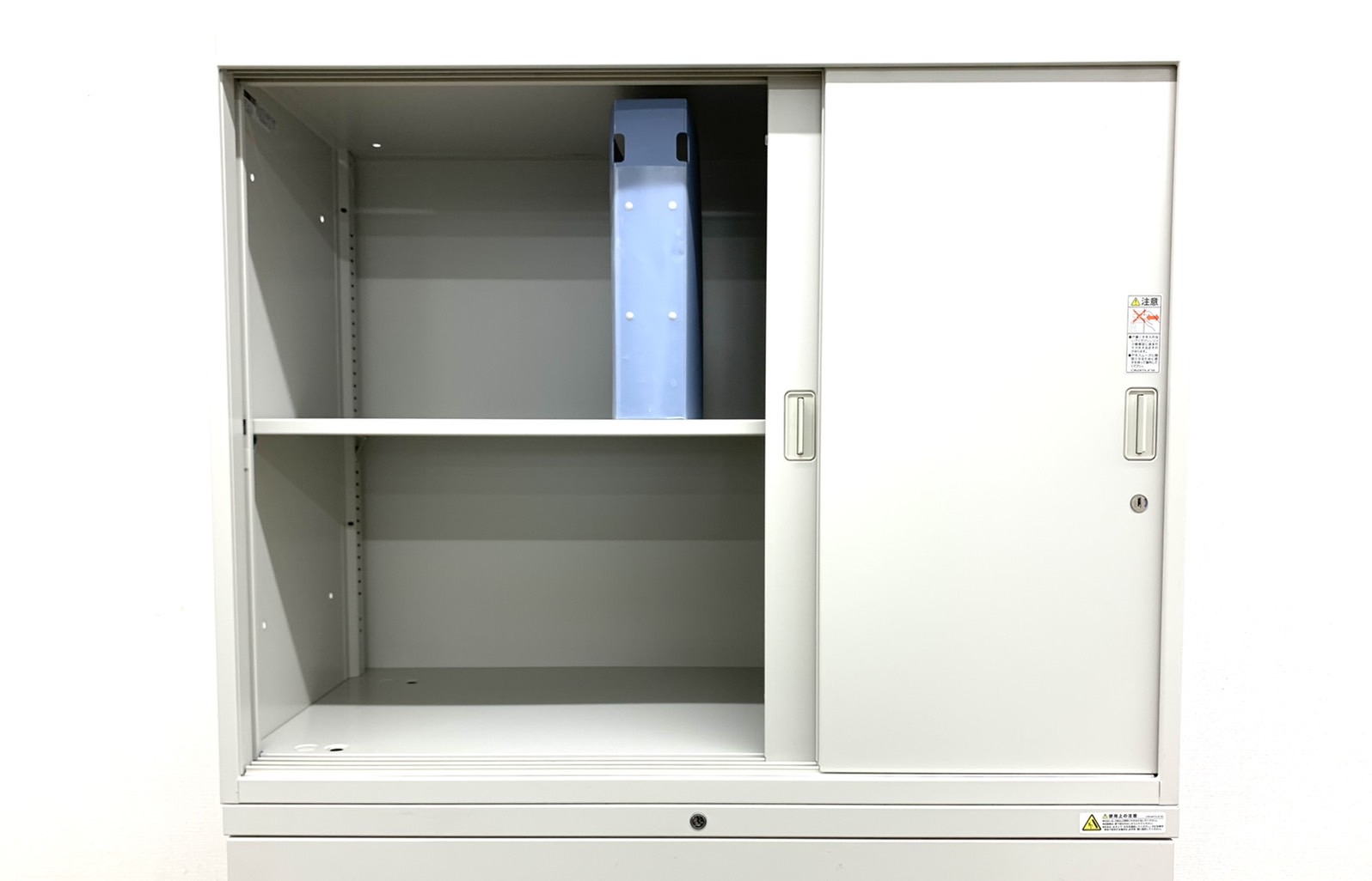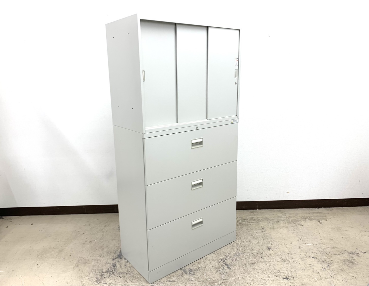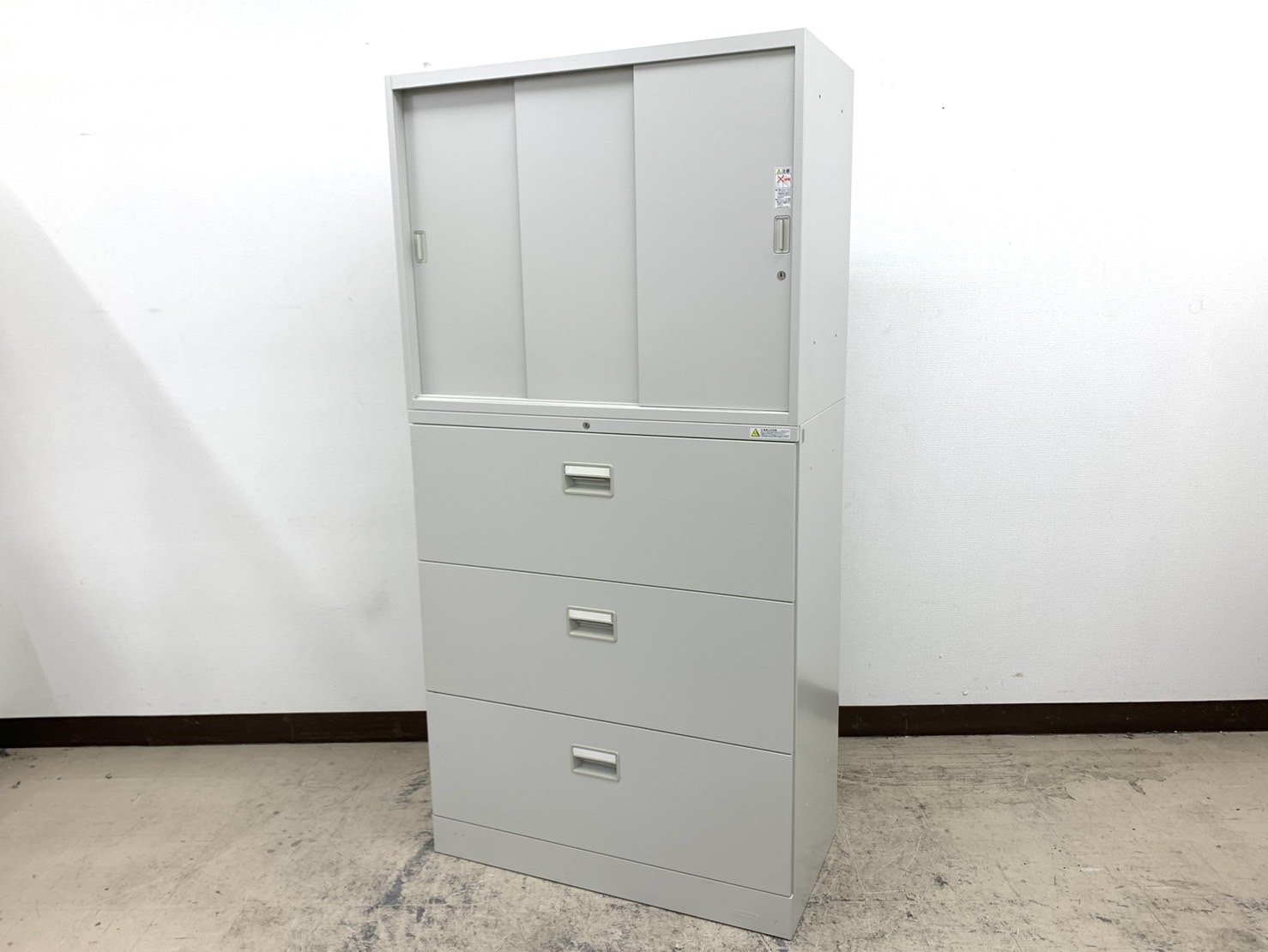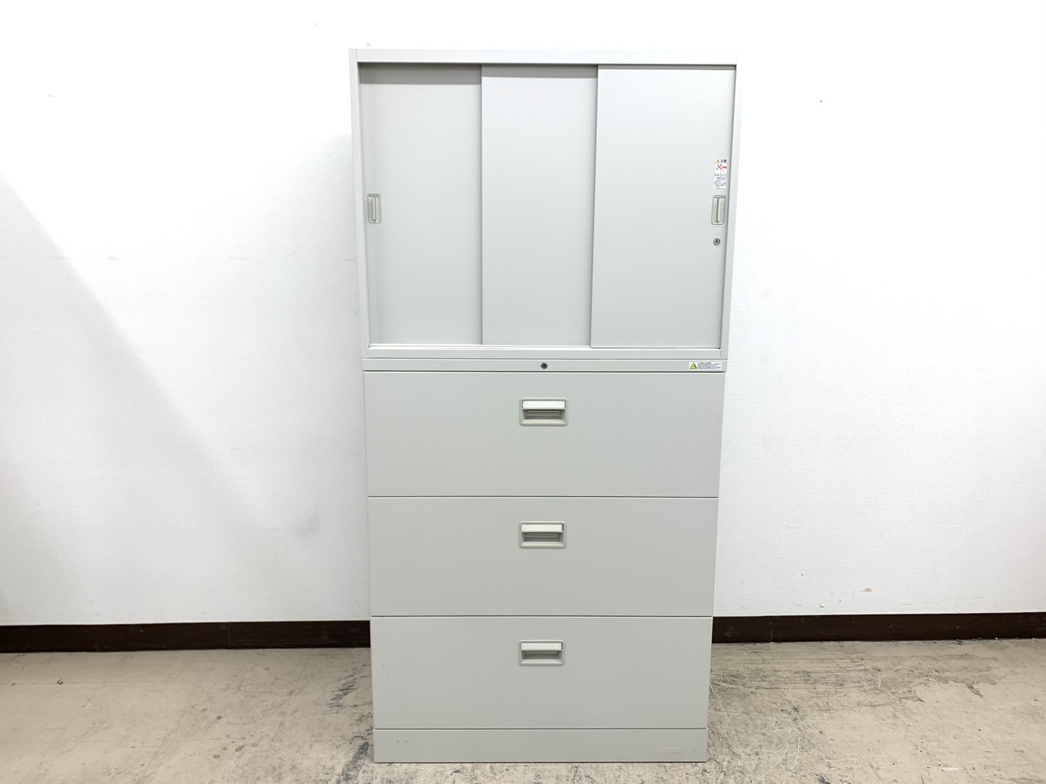 【2台入荷】丁度よい高さ=1800mm上下書庫※上段:3枚引き戸&下段:三段タイプ◆オカムラ製【RP】- 埼玉本店