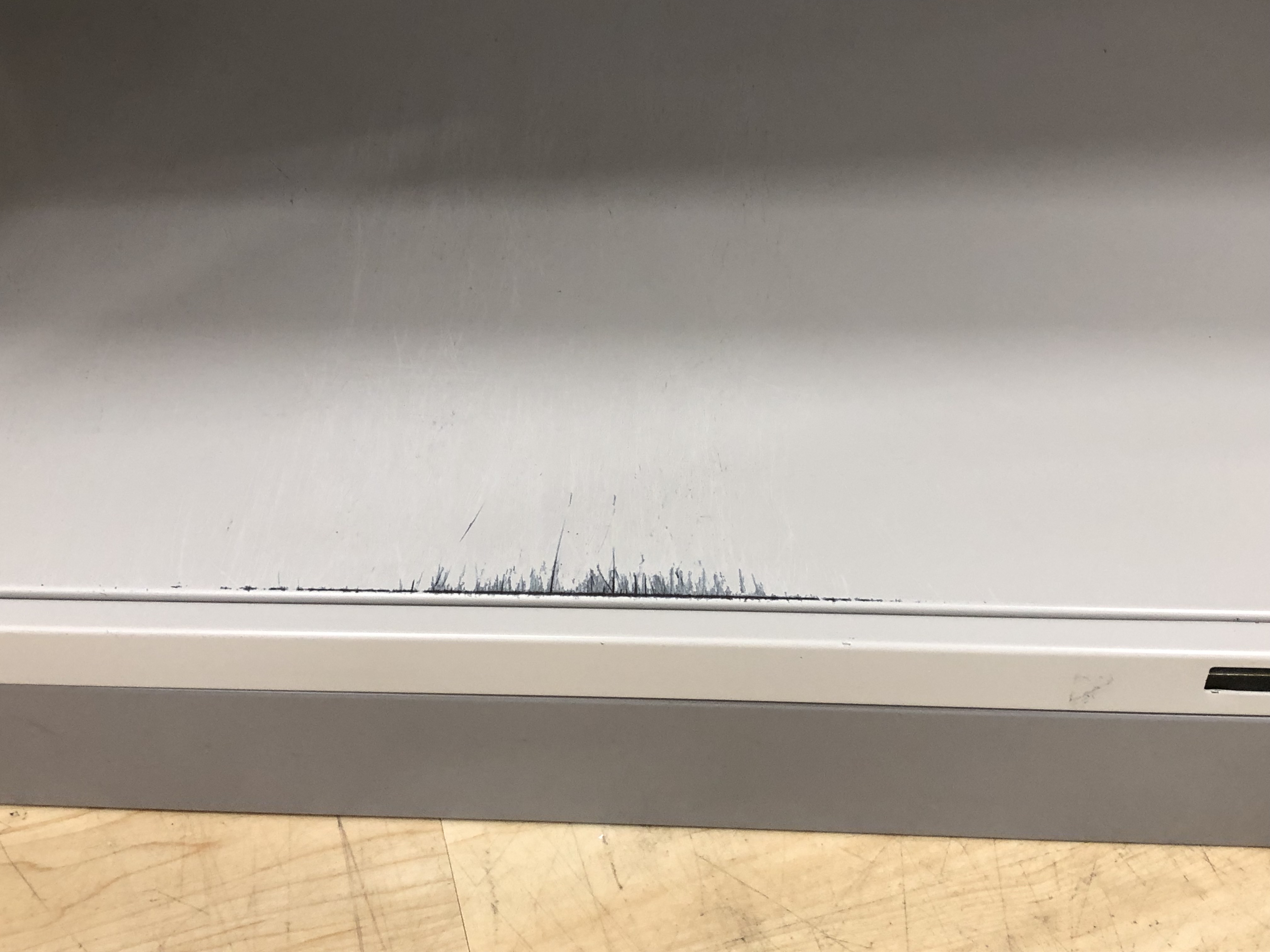 - 目立つ箇所あり傷・凹みが多数、深い傷・凹みが一部ある。(例、天板、正面、背部、サイド部分にある。)