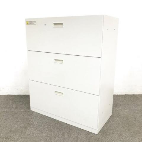 【新品】【メーカー在庫品】ウチダ 製 BEストレージ ホワイト 高さ1100サイズ シリンダー オフィス書類をたっぷり収納 3段ラテラル書庫!!【店舗展示品アリ!】