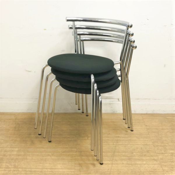 おしゃれ 座面丸型のスタッキングチェア オカムラ ※脚の底面キャップ欠損あり- 名古屋千種店