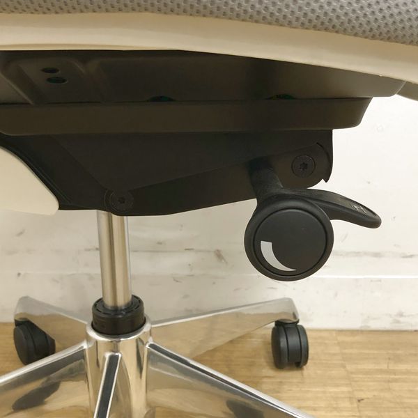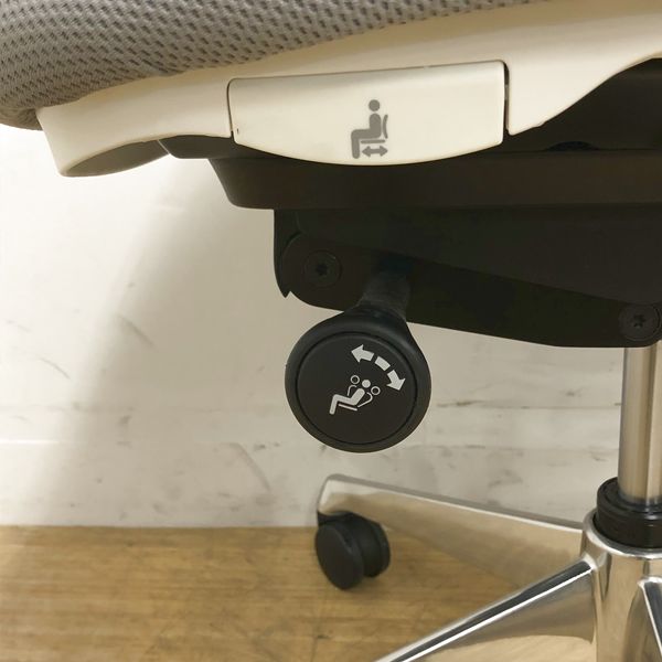 - 座面右下のダイヤル操作で、リクライニングの強弱調整が行えます。これまでのダイヤル式よりも、少ない回転数で、最弱?最強の調整が可能です。