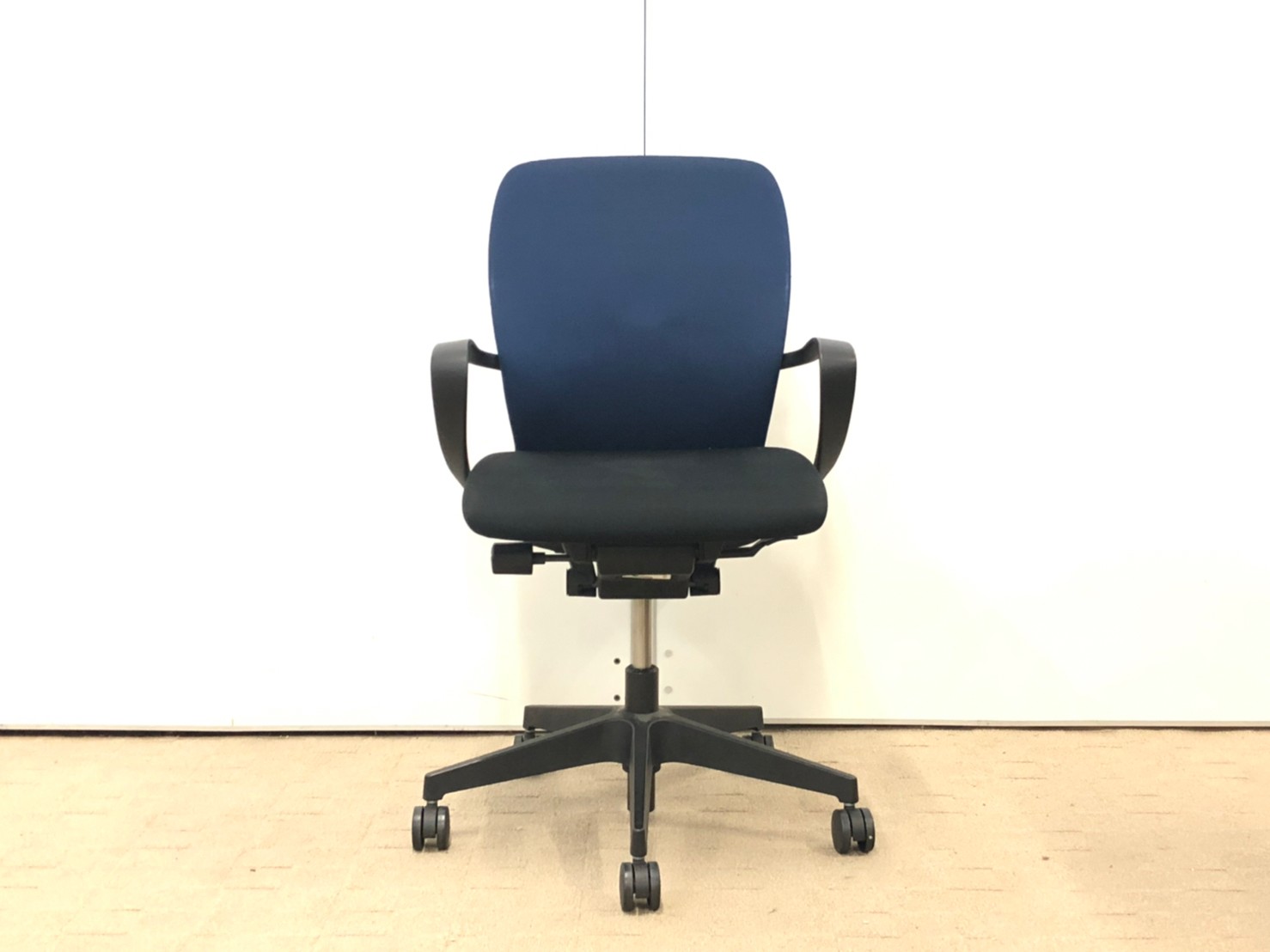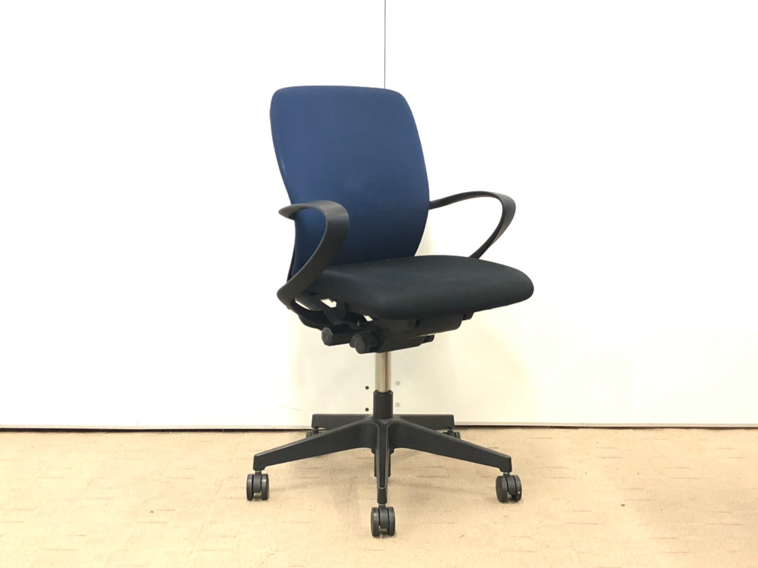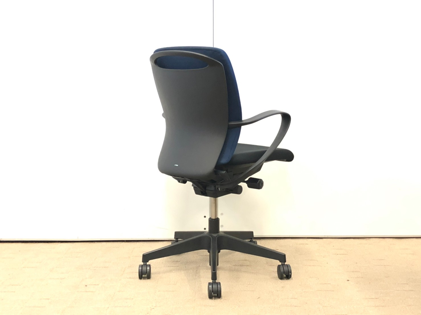 【背もたれ・座面使用感のすれあり】イトーキ製 人気高いフルゴシリーズ ブラック×ネイビーブルー 肘付きローバックチェア!!【関西倉庫在庫】